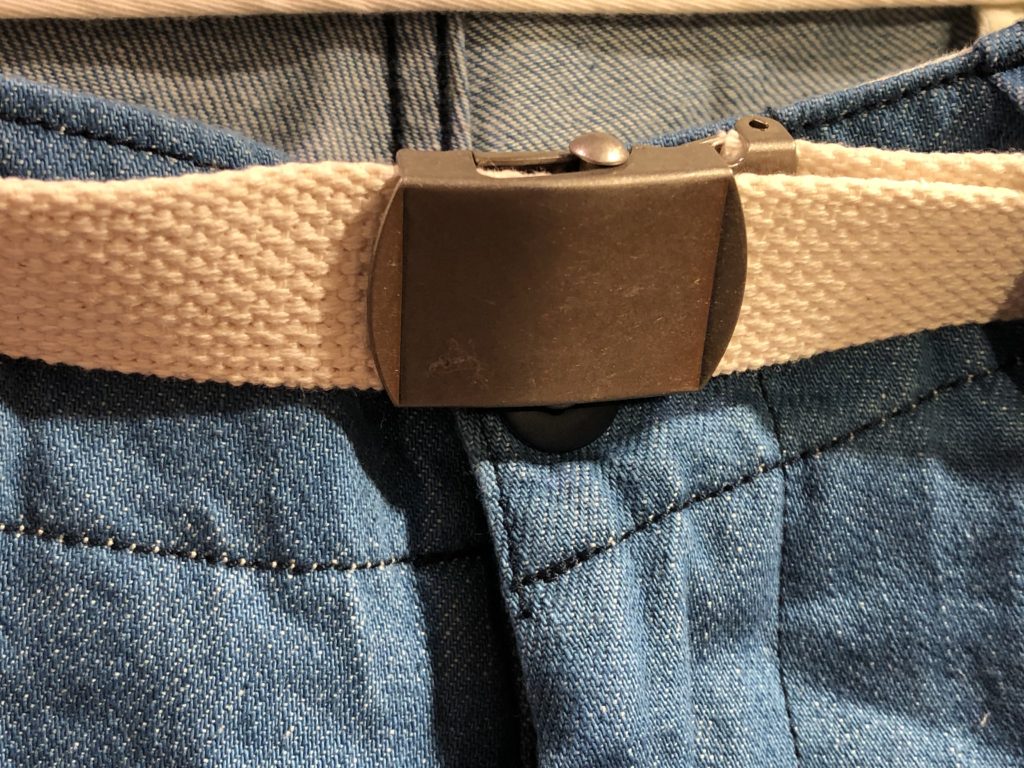 チノパンツと同じく、ローラーバックル式のベルトが付属。