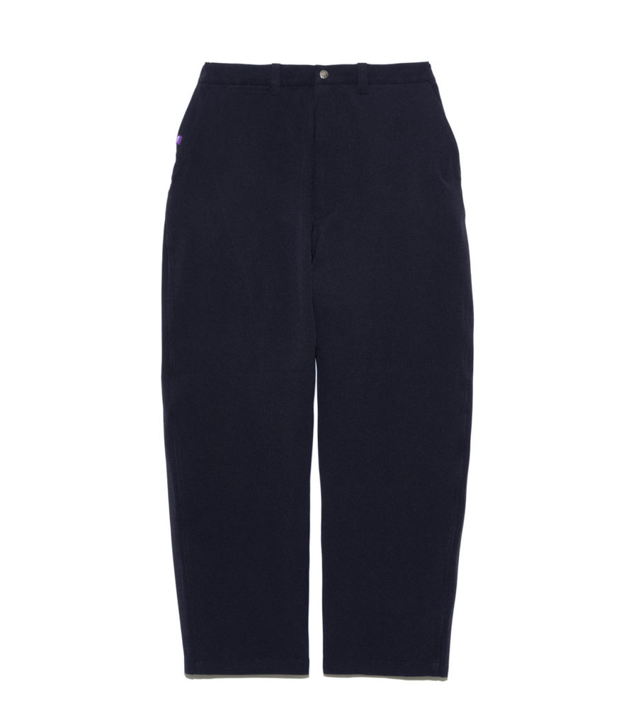 リサイクルポリエステルストレッチツイルを使用した、ワイドテーパードパンツ。