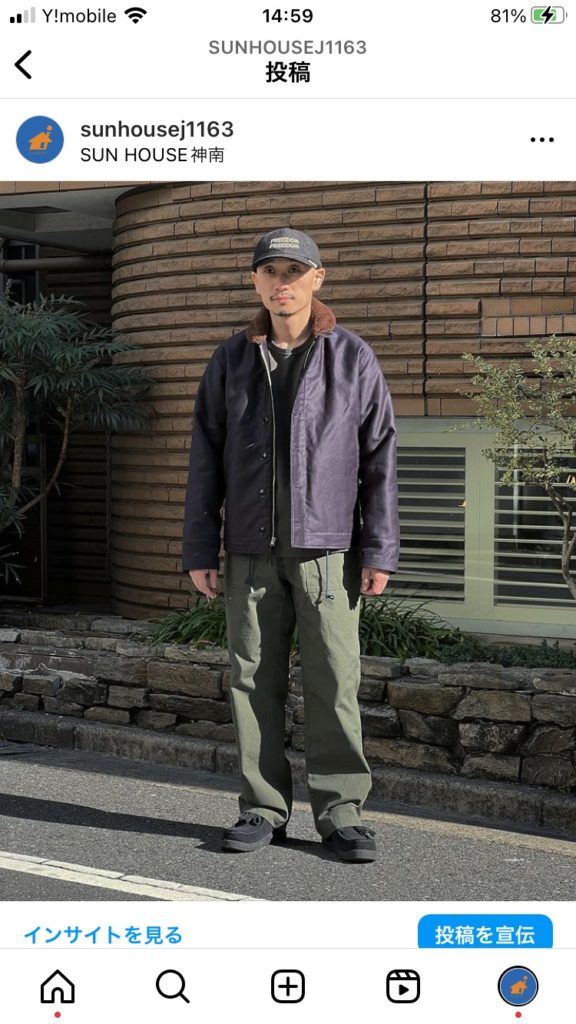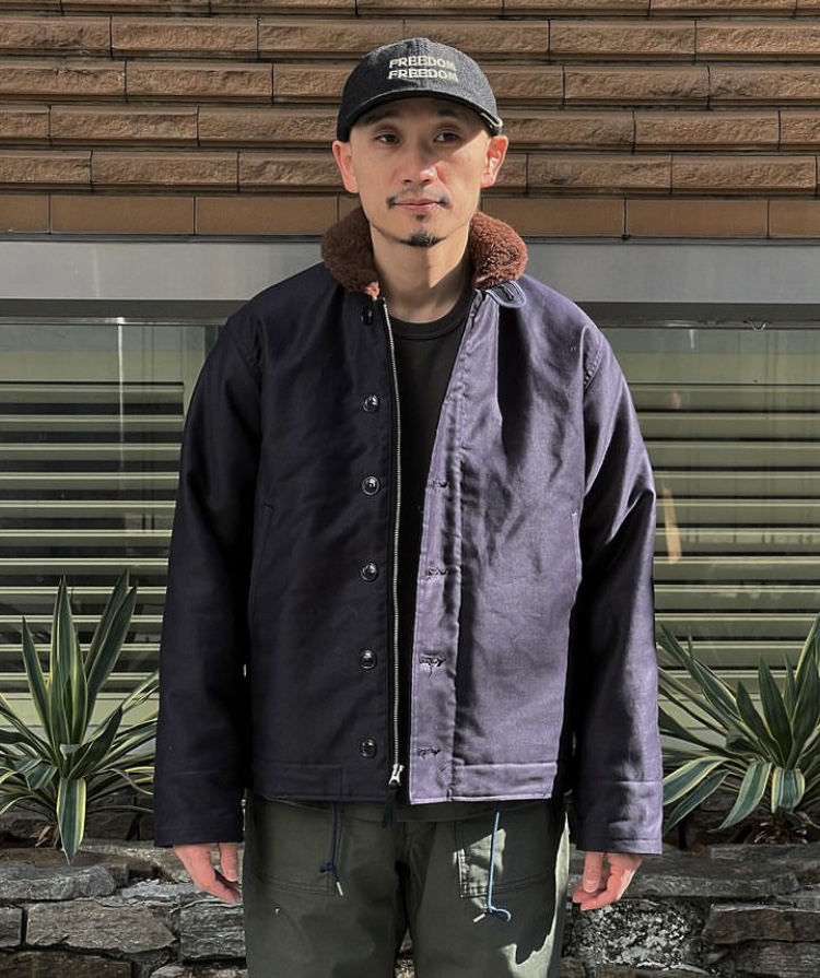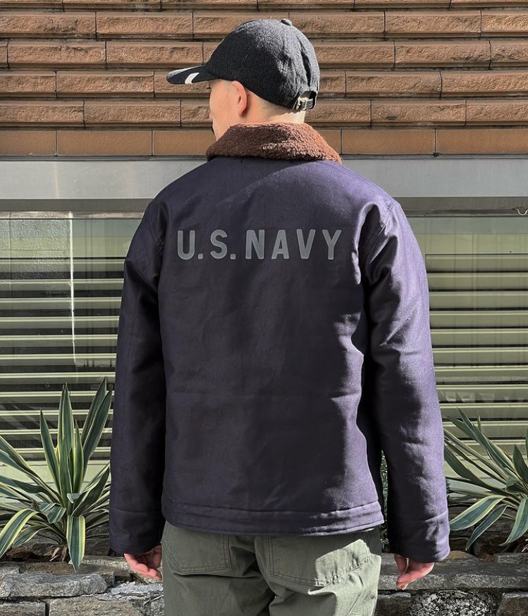 N-1デッキジャケットは同素材のトラウザースとセットで第二次世界大戦から朝鮮戦争にかけて米海軍の艦艇乗員用として採用された。