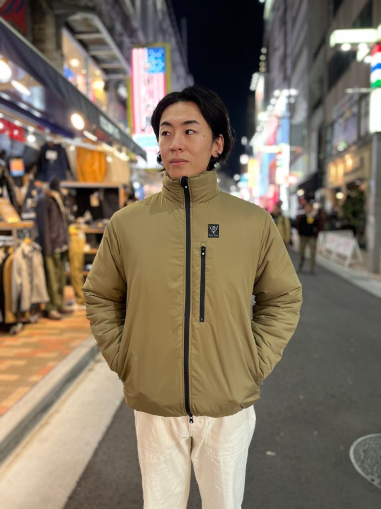 首元をしっかりとカバーするスタンドカラーと、ボリューム感のある中綿が生み出す柔らかなシルエットが特徴の一着。