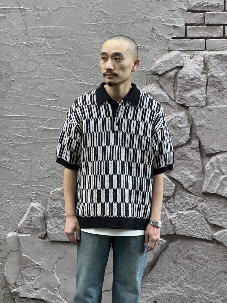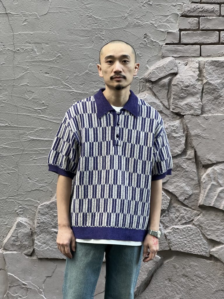 日本の伝統的な柄を連想させる模様や、リブ、アンティーク感のあるボタンなど、シンプルでありながらクラシックなムード漂うデザインのポロセーター。ふっくらとした見た目ですが、シャリ感のある通気性の良いニット素材となっており、春先に適した清涼感のある仕上がりです。