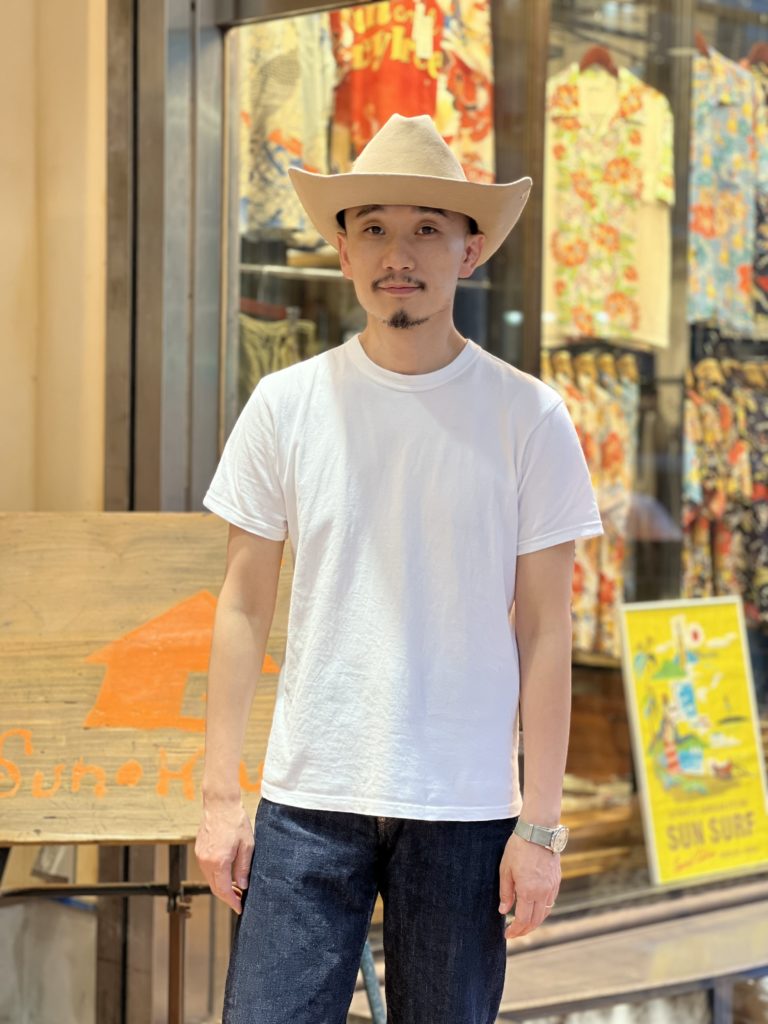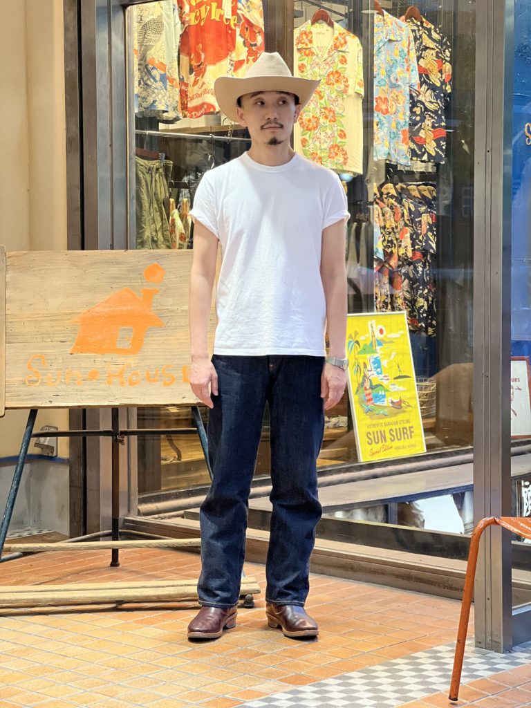 スタイリングはジーパンに白T。