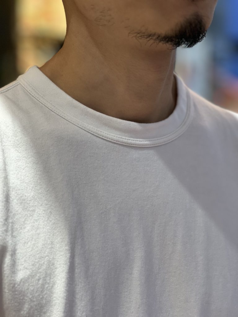 これにより、通常のTシャツよりも首まわりが