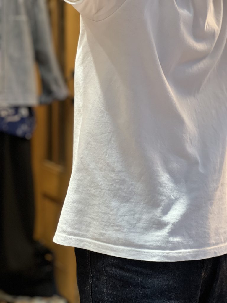 肩、裾、袖口は2本針の縫製。