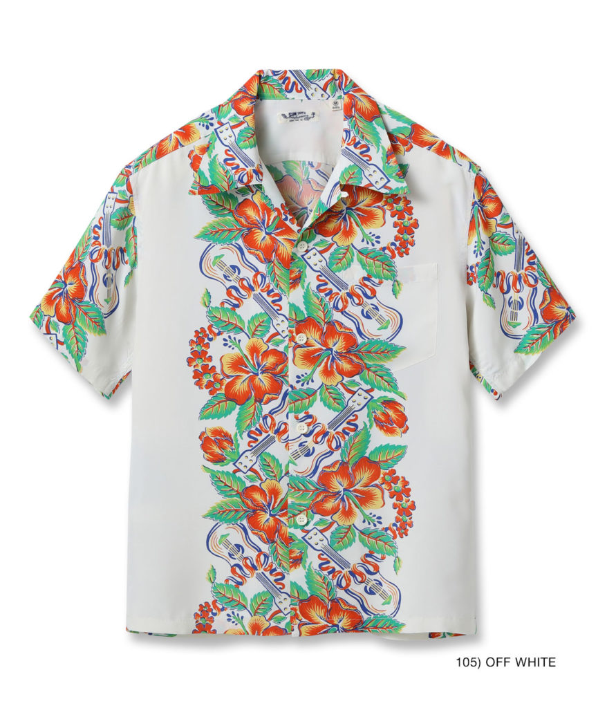 アロハシャツの柄としても採用される頻度の高いそれらのモチーフが 6色の抜染の手法により、互いが引き立てられるよう表現されている。また、描かれている図柄の大きさやレイアウトのバランスなど、デザインとしての完成度も高い。コレクターからの支持も厚く、ヴィンテージ・アロハシャツを扱う書籍にも掲載されている。