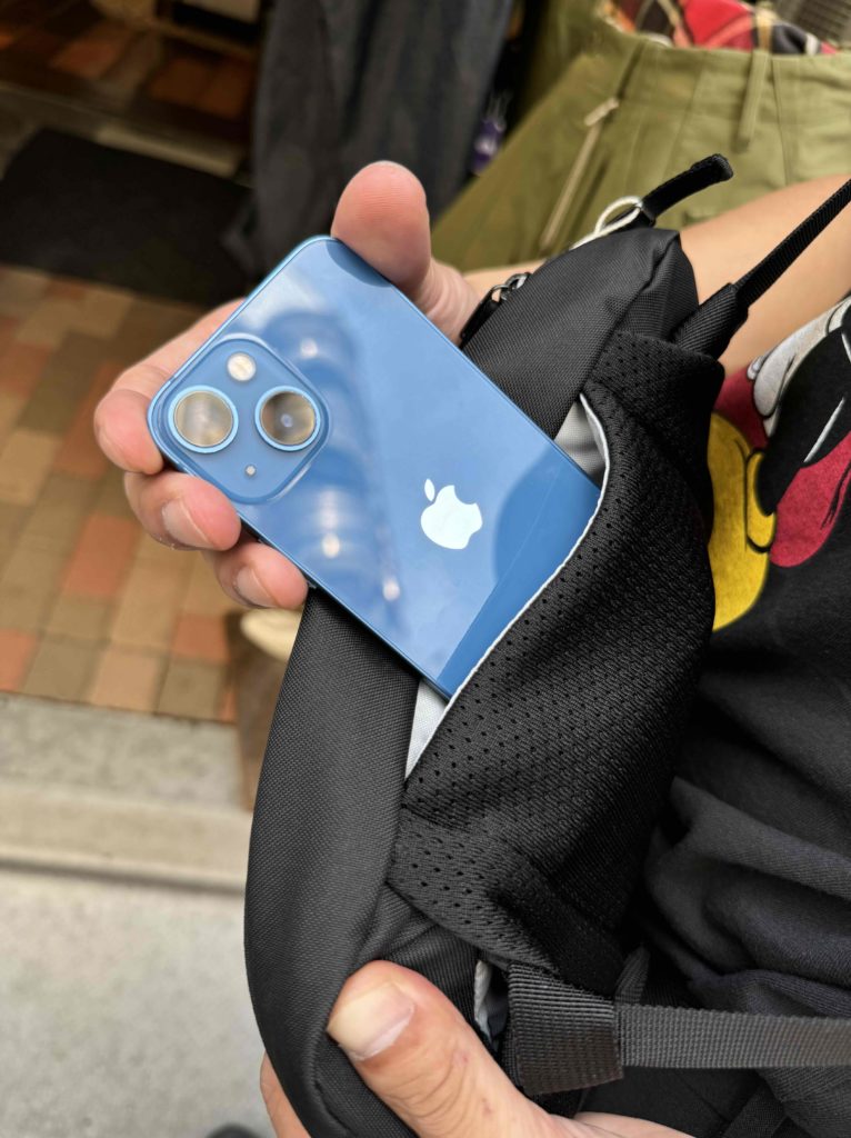 バックパネルのスマートで目立たないポケットには、スマートフォンを収納できます。