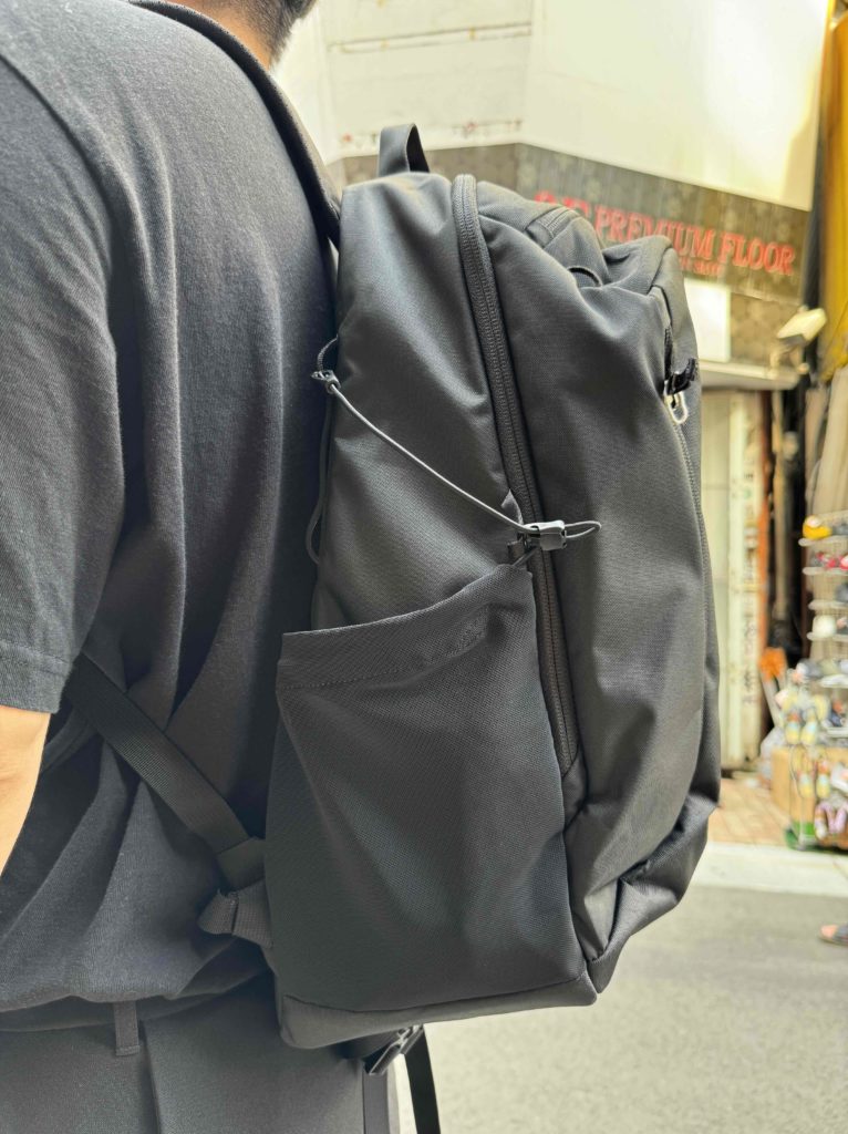 パッド入りバックパネル、フレームシート、アルミ製ステイの一体化で、快適な背負い心地を追求。調節可能なサイドポケットには水筒、ウィンドシェル、カメラを収納できます。