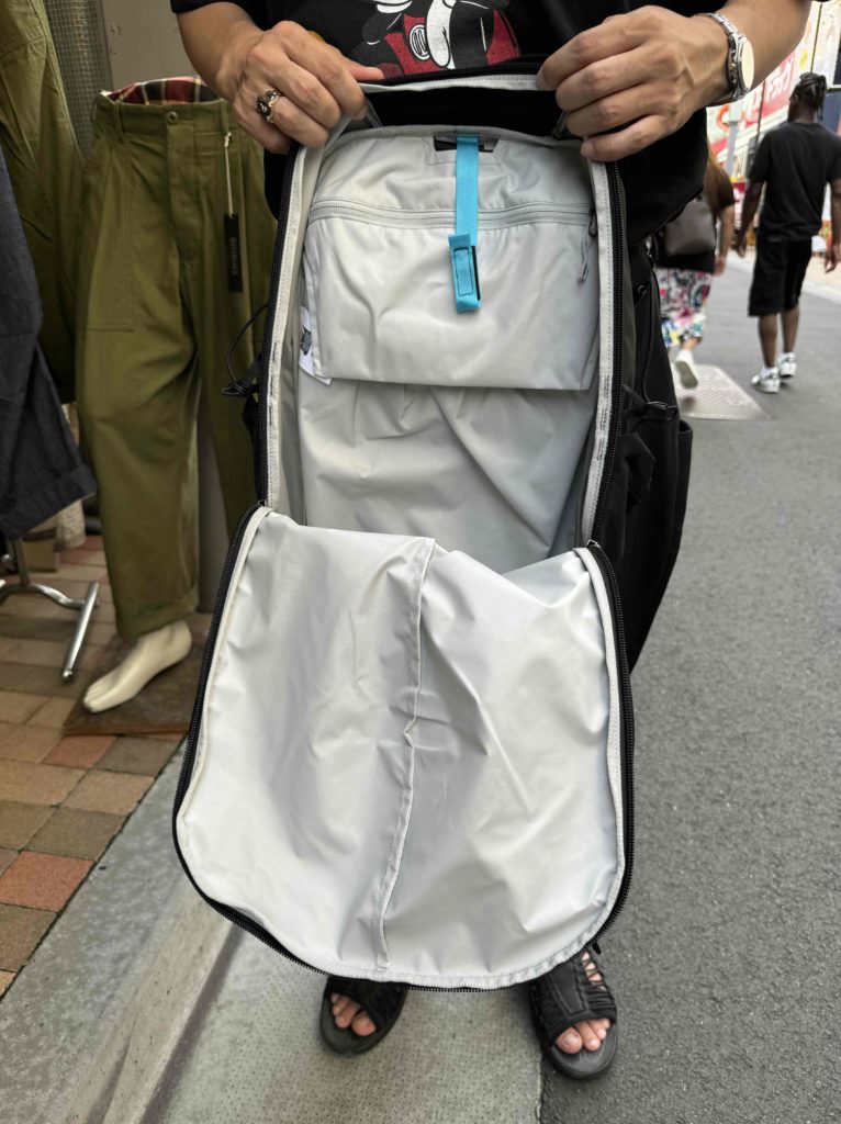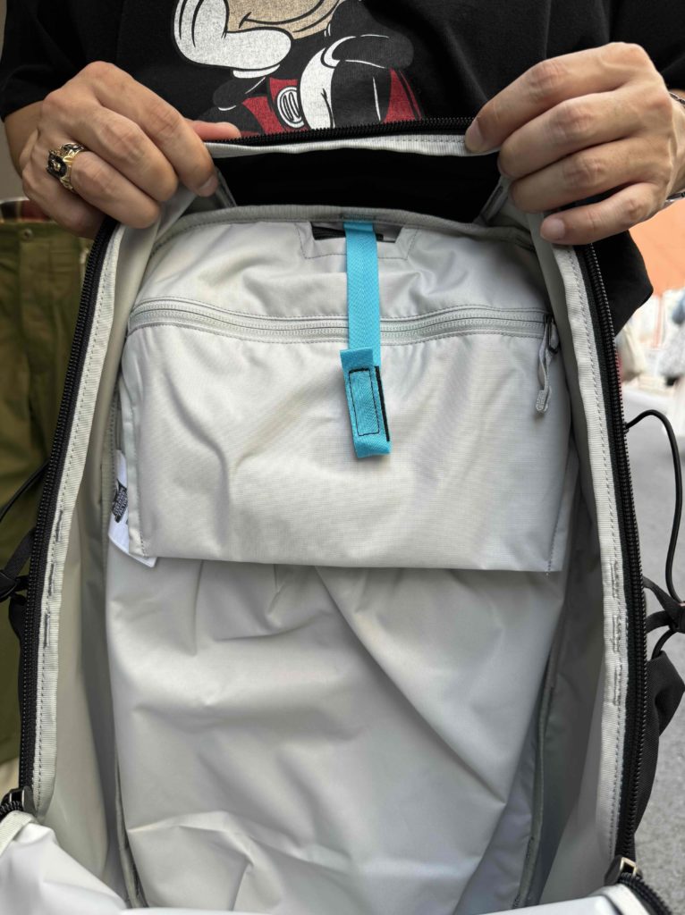 ポケットが多く整理がしやすく、内側にはハイドレーションブラッダーやノートパソコンが収納できるスリーブがあります。