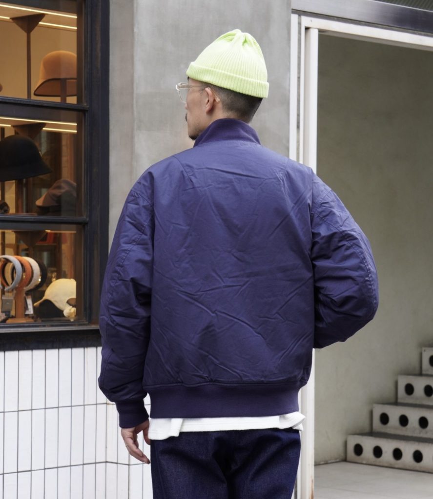 袖口のリブは、ビンテージのフライトジャケットのようにハギのない筒編みのテンションが2段になっている物で肌触りの良いウールを使用。