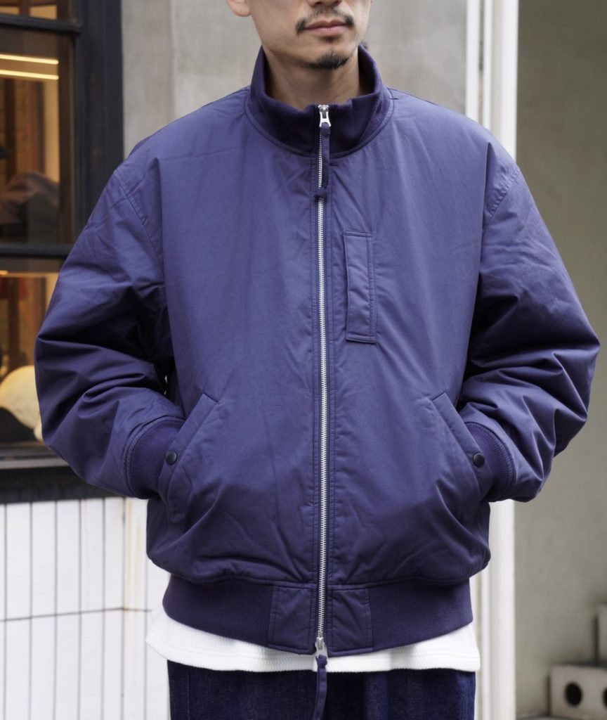 表面は高密度に織り上げたコットン100%のツイルを使用。高密度に織り上げる事で防風性が高くソフトで軽い仕上がりのジャケット。