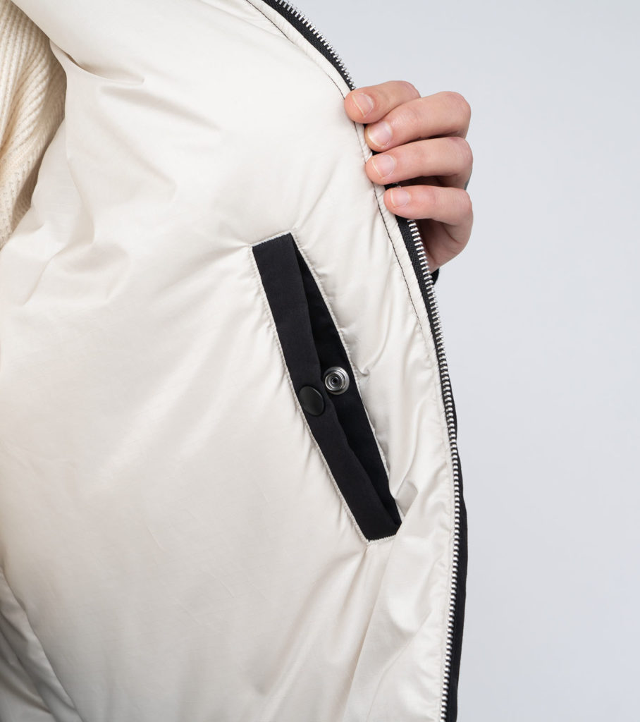 裏地にはリサイクルポリエステルリップストップを使用。中わたには、100%リサイクル原料を使用した保温性と軽量性に優れたPRIMALOFT® Black Insulationを使用。