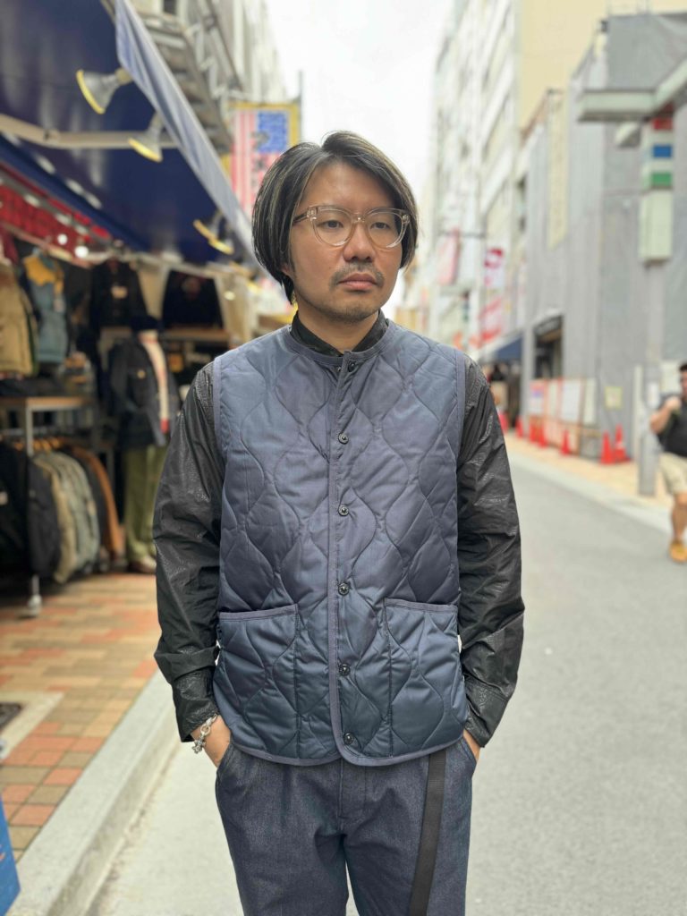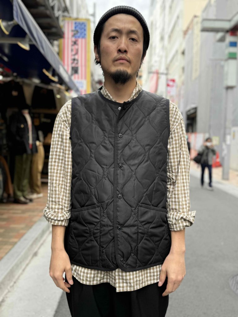 シンプルなデザインに金属ボタンがアクセントになった、ミリタリークルーネックダウンべストです。