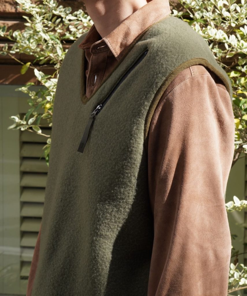 1970年代のアウトドアギアから着想を得たベストを特別なウールであしらえた一着。