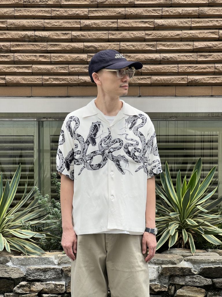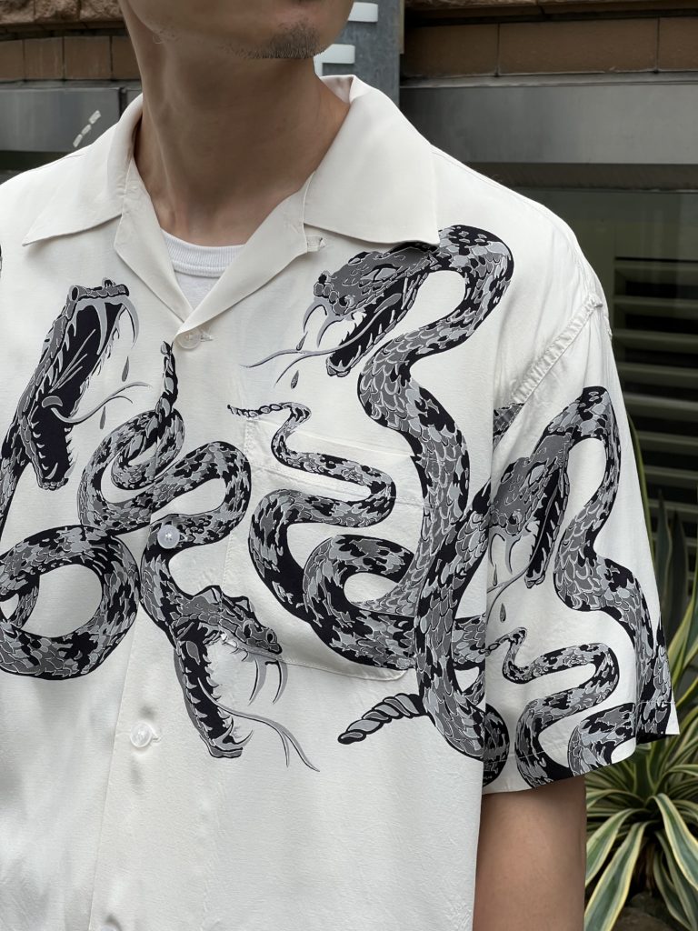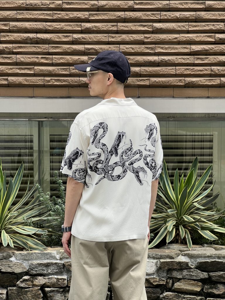 1950年代に衝撃的なプリントシャツを生み出したブランド「スターオブハリウッド」の中より、傑作の一つ「ラトルスネーク」を復刻。