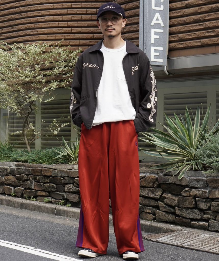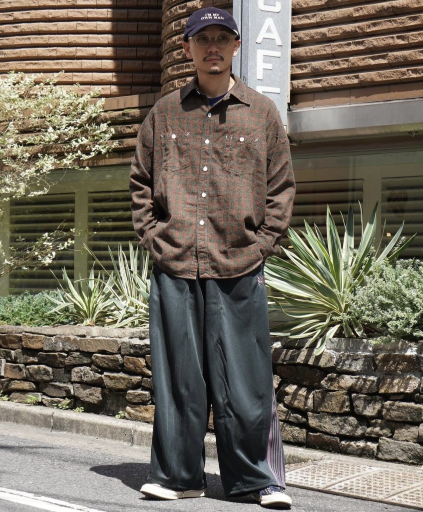 トラックパンツと並び人気の高い〈NEEDLES〉の定番ボトムス、H.D. PANTのシルエットを落とし込んだ個性的な一本。