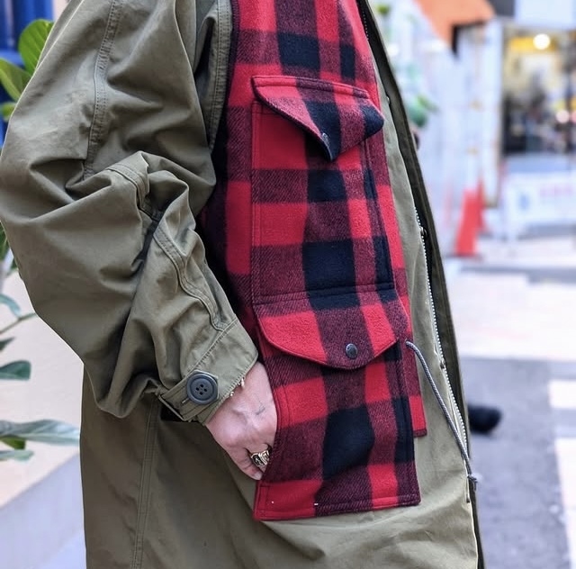 US.ARMYのM-65タイプに、フィルソンといえばコレとも言える、THEアメカジな赤のブロックチェックウールが大胆に組み合わさったミリタリーパーカー。