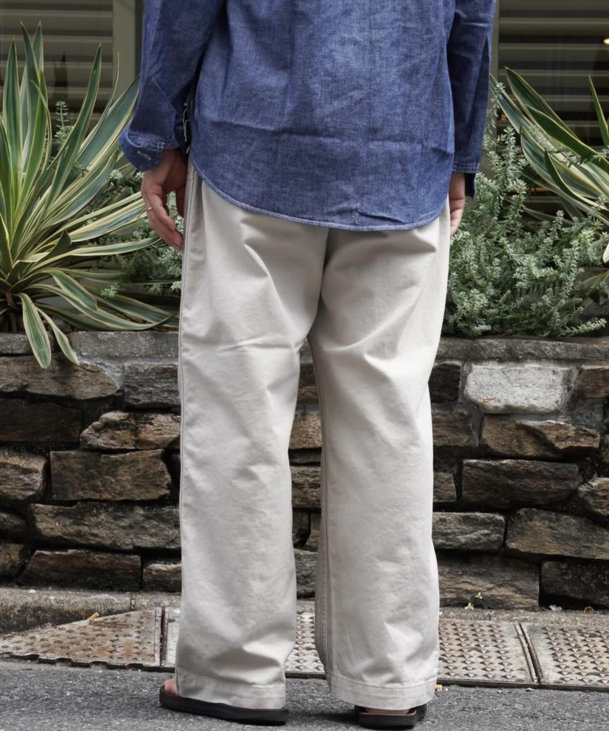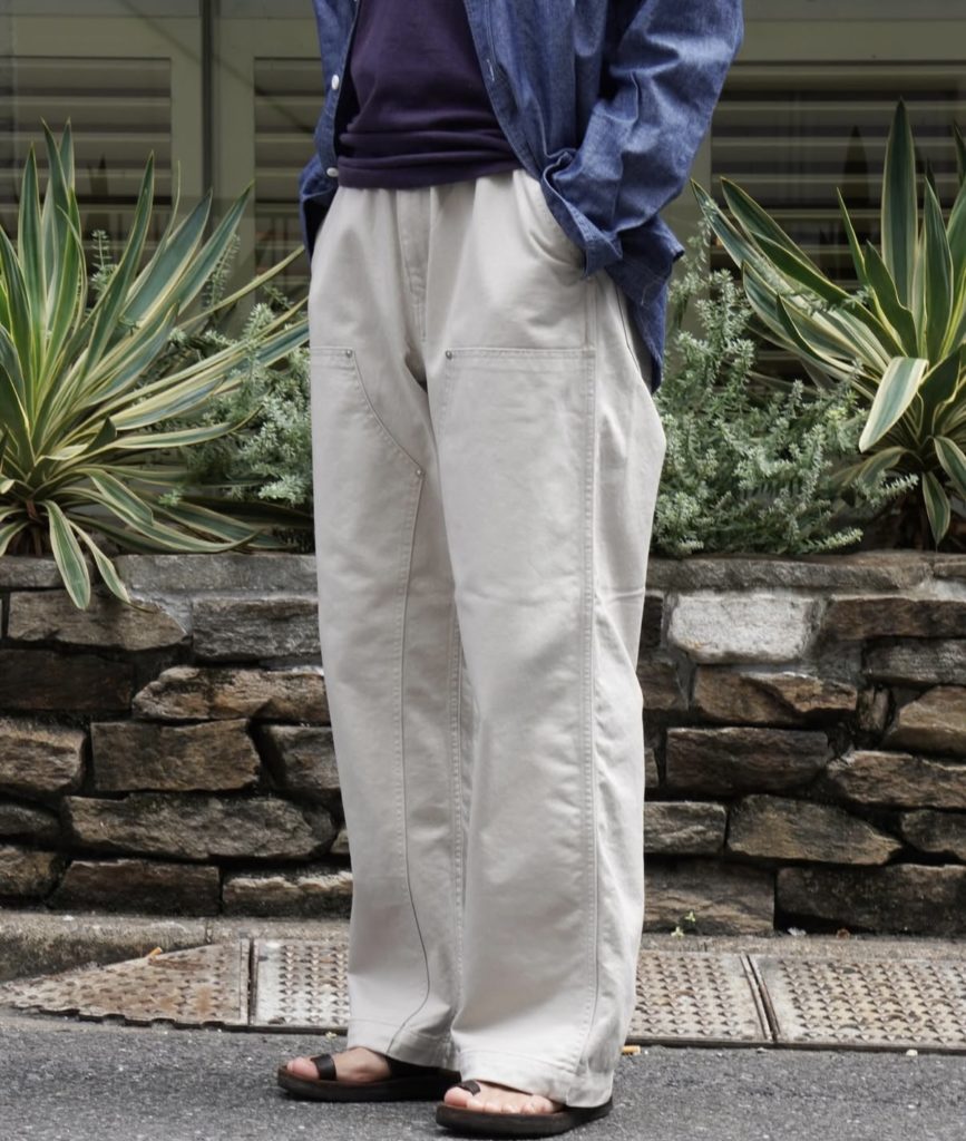 デニムと同じデザインを使用した、イージーパンツ仕様のダブルニーパンツ。