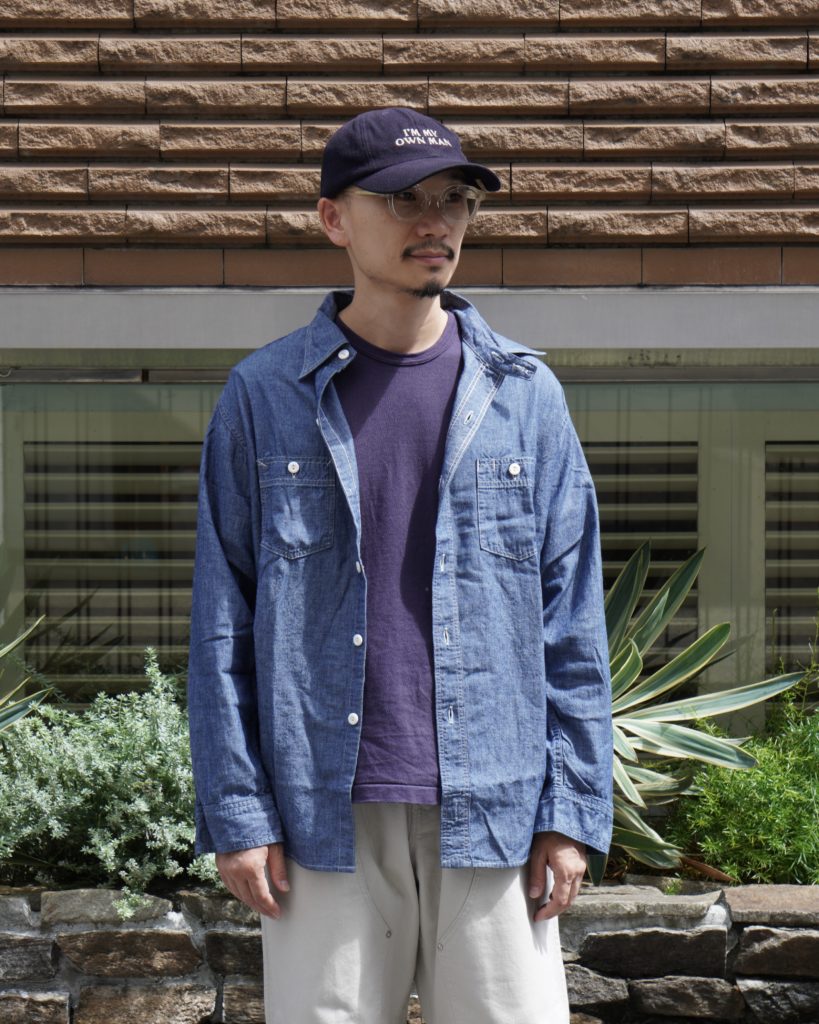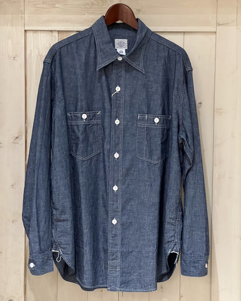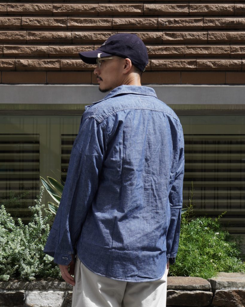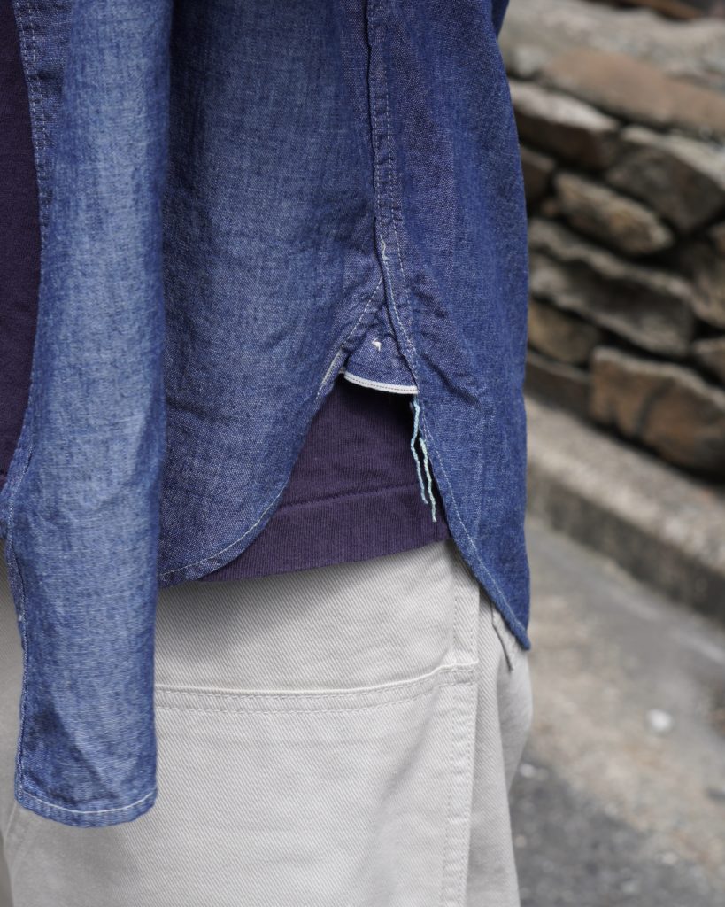 2ポケットのシンプルなシャンブレーシャツ。