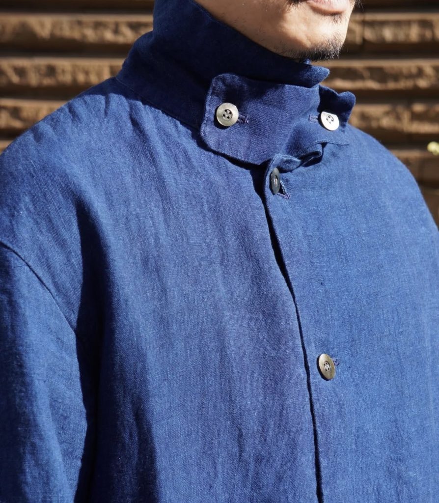 定番サクラコートと生地は異なり、表地は落ち感のある柔らかなリネン100%の生地を使用。