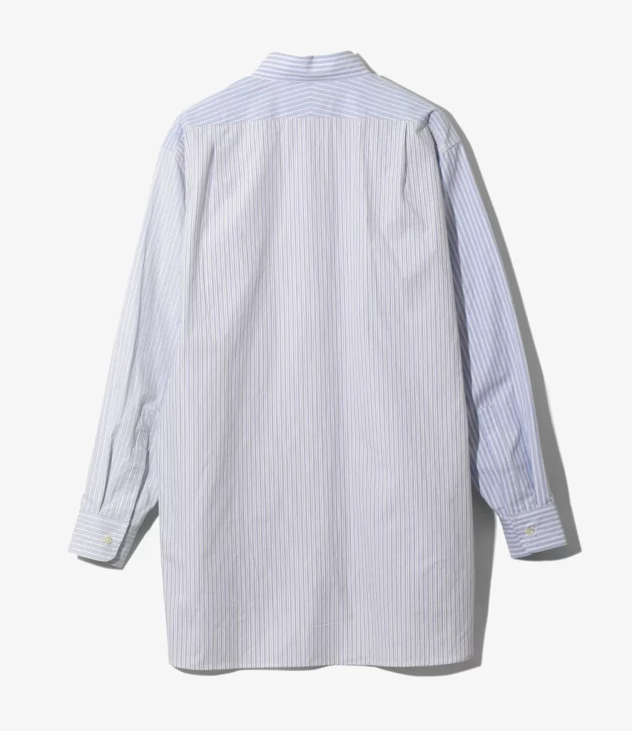 高密度に織り上げられた生地は軽やかで丈夫、シャープなストライプ柄は、身頃の左右で生地の切り替えを施した、ユニークなコンボ仕様になっています。