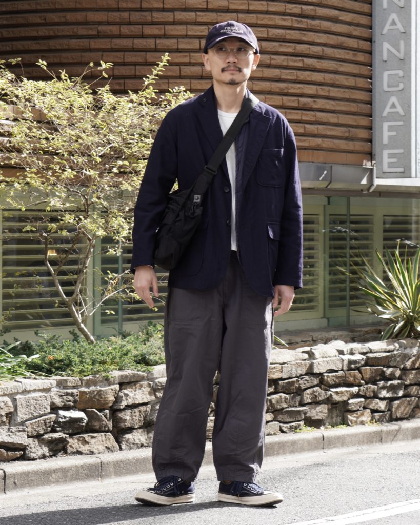 ネイビーのジャケットを合わせてみました。