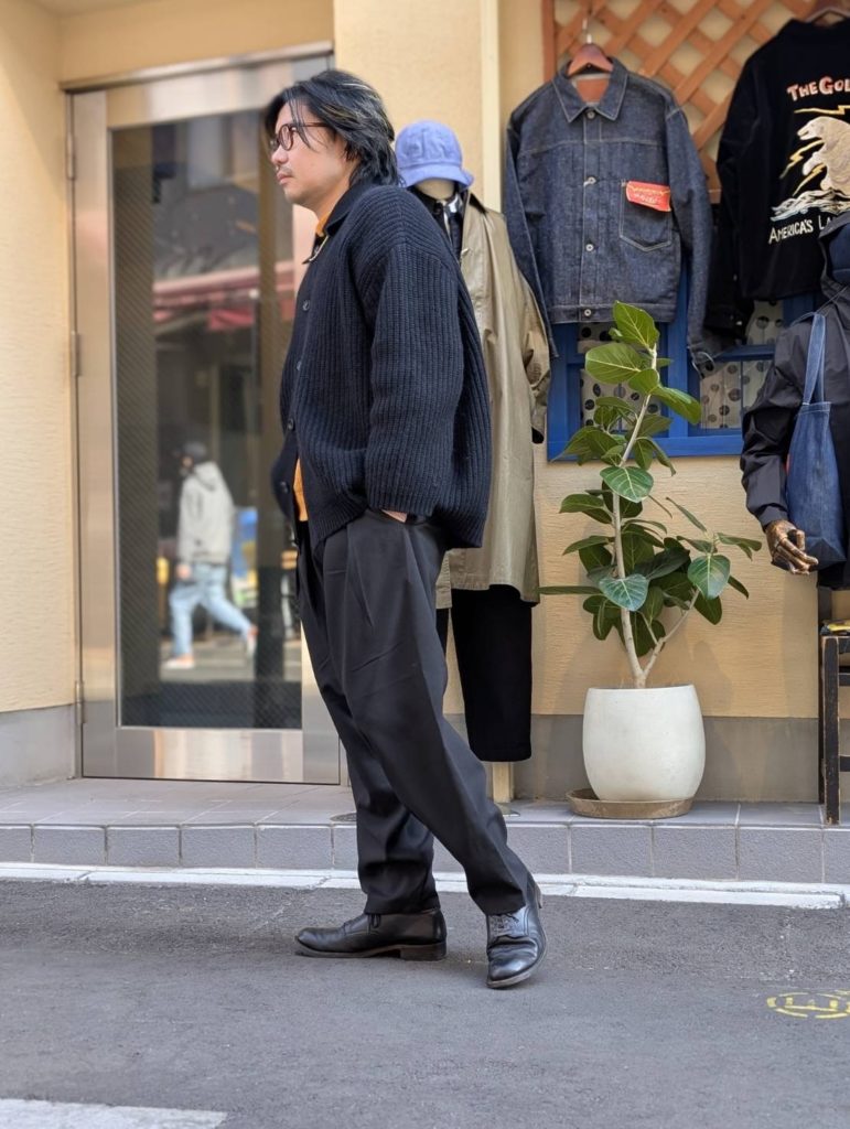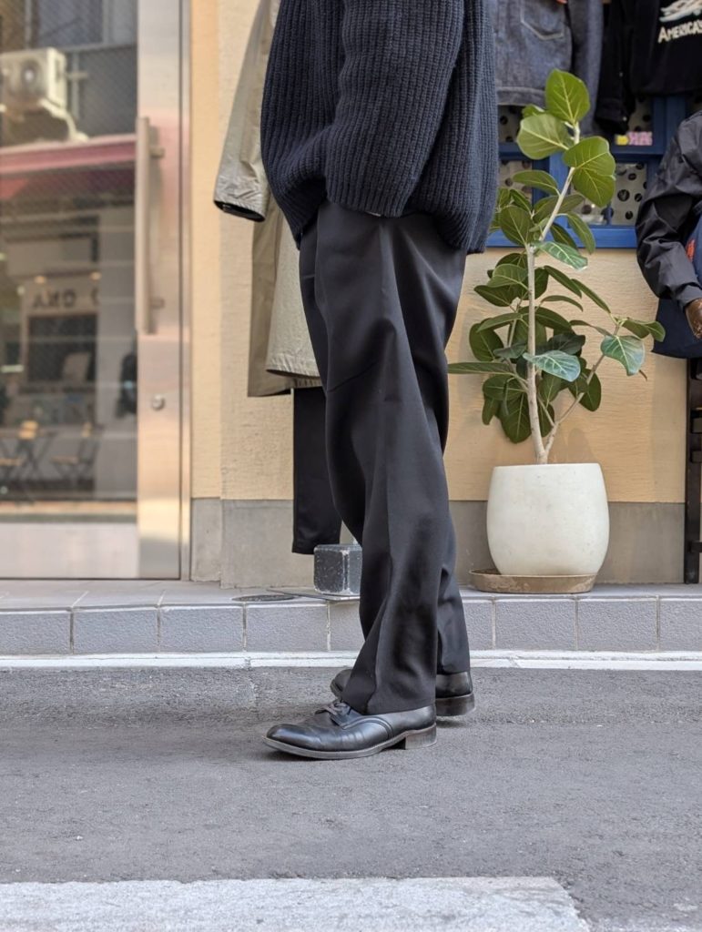 レングスが丁度良く、裾は溜まらずテーパード具合がキレイに見えます。個人的にはこちらの方が好みです。