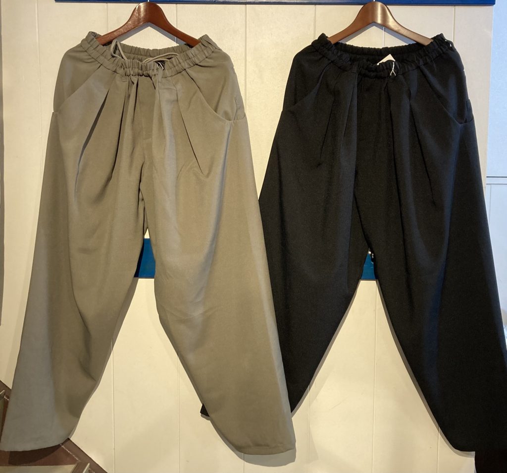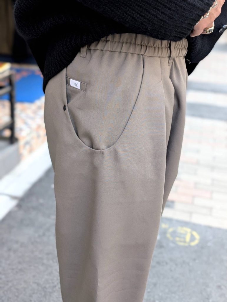 F/CE.の定番として愛されるバルーンシルエットを、機能的なトロピカルストレッチ素材で仕上げたイージーパンツ。
