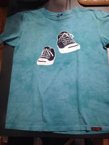 Good Onの白ボディーを一枚ずつ手作業で染めています。