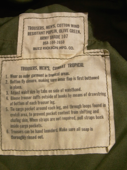 TROUSERS,MEN’S COMBAT TROPICALとなります。