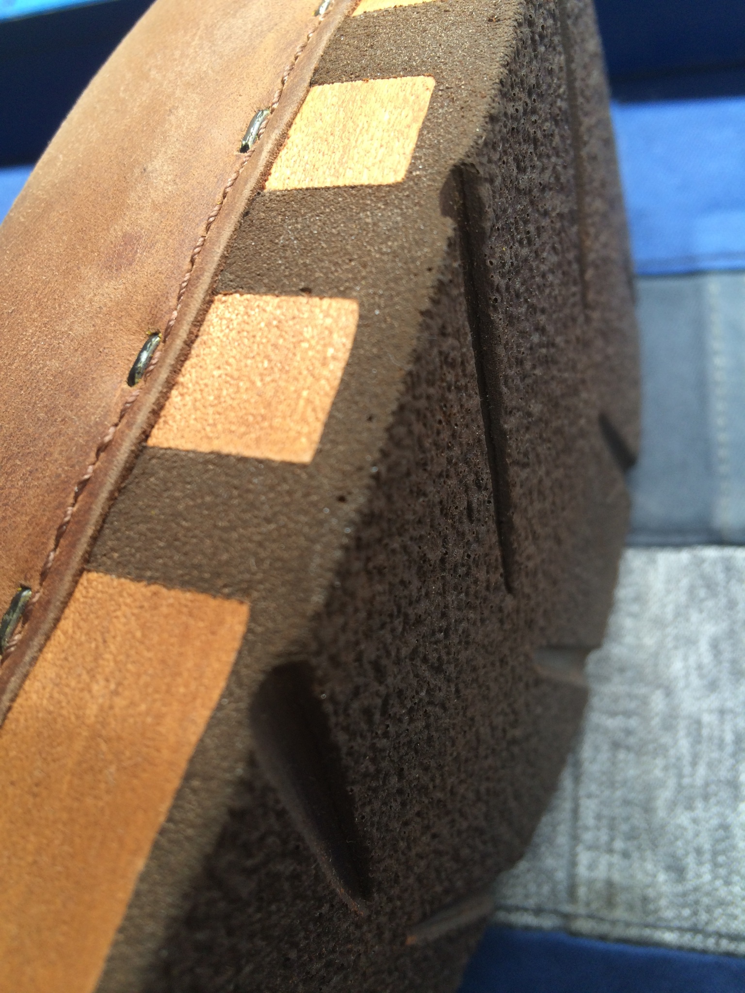 Woody のシューズの最大の特徴は、フットベットにラバーの切り替えが入っていることで、歩き易く、疲れにくい設計となっている。