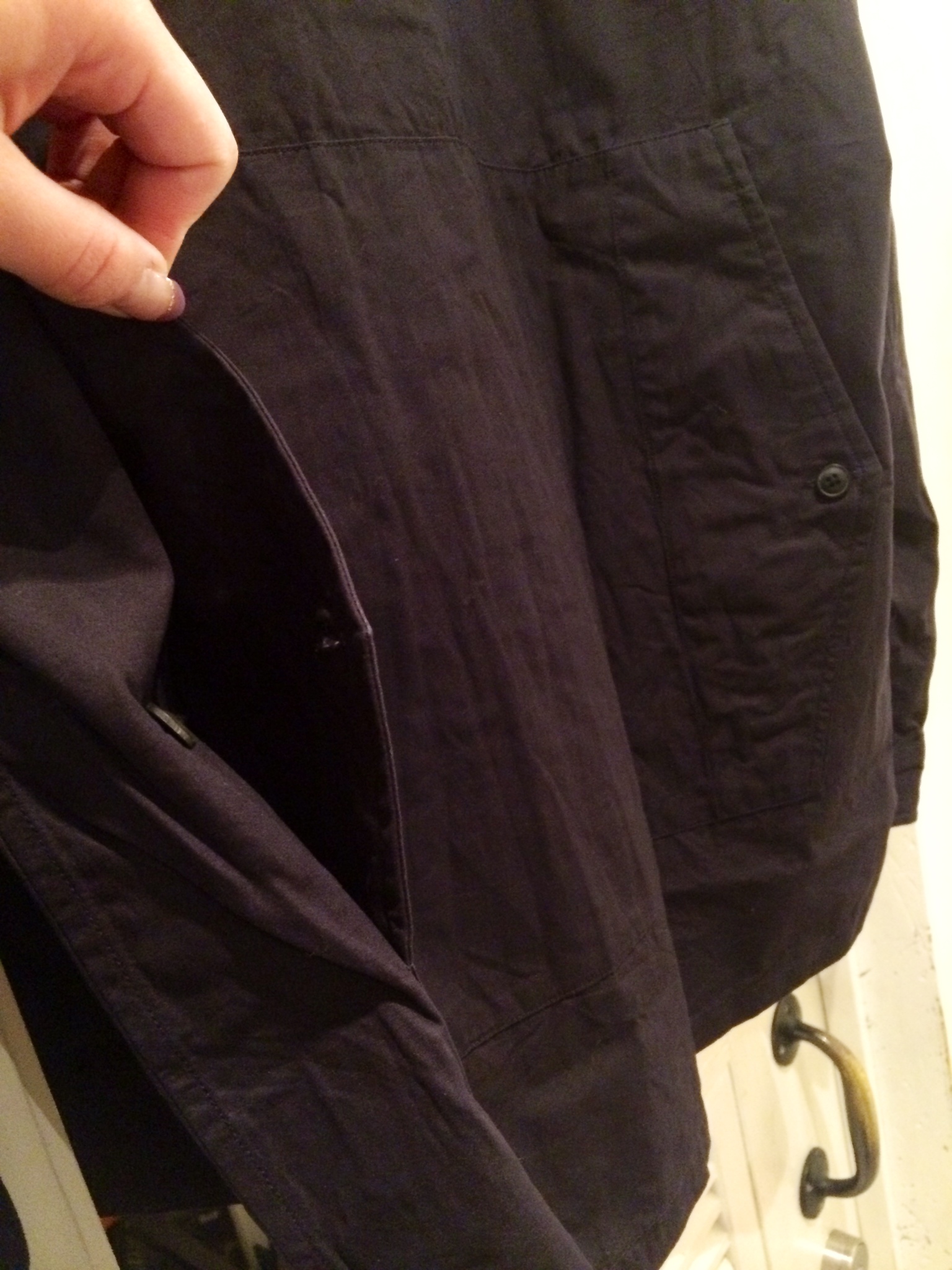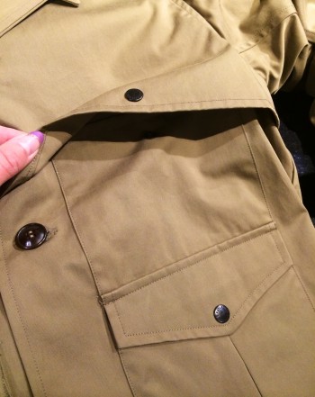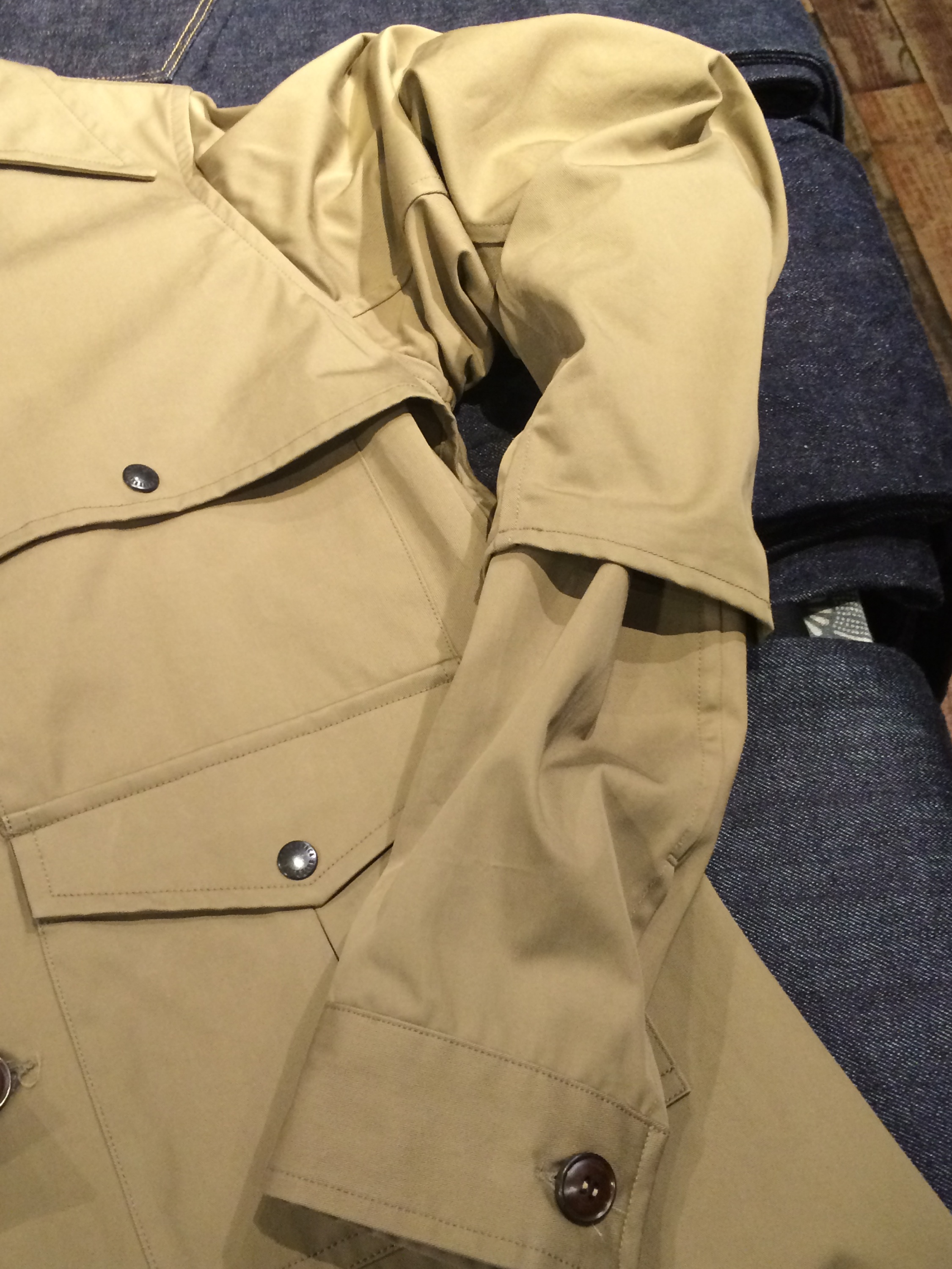 素材は張りのあるツイル地で、通常はトレンチコートなどに