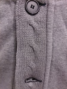襟、前たて、袖リブ、ポケット部分にコットンニットのアクセント。