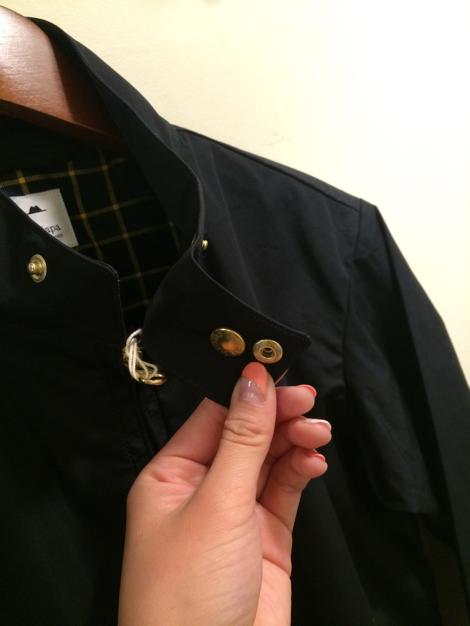 襟を立てると、ストラップが付いているので、