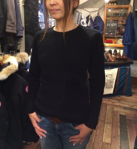 少し女性が着ると、ザックリとした感じになりますが