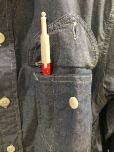 今回のスタンドカラーはシャンブレー生地になっています。