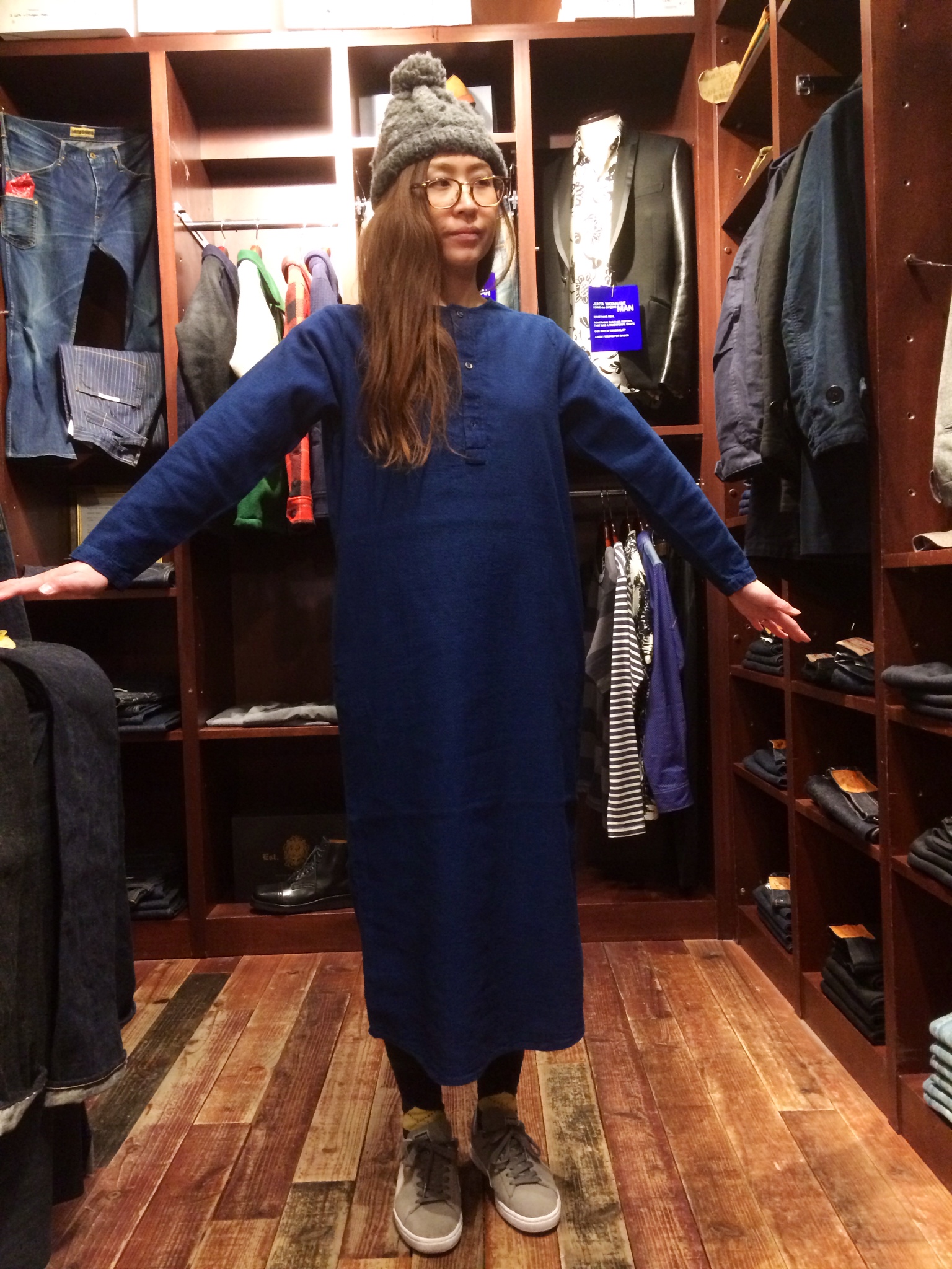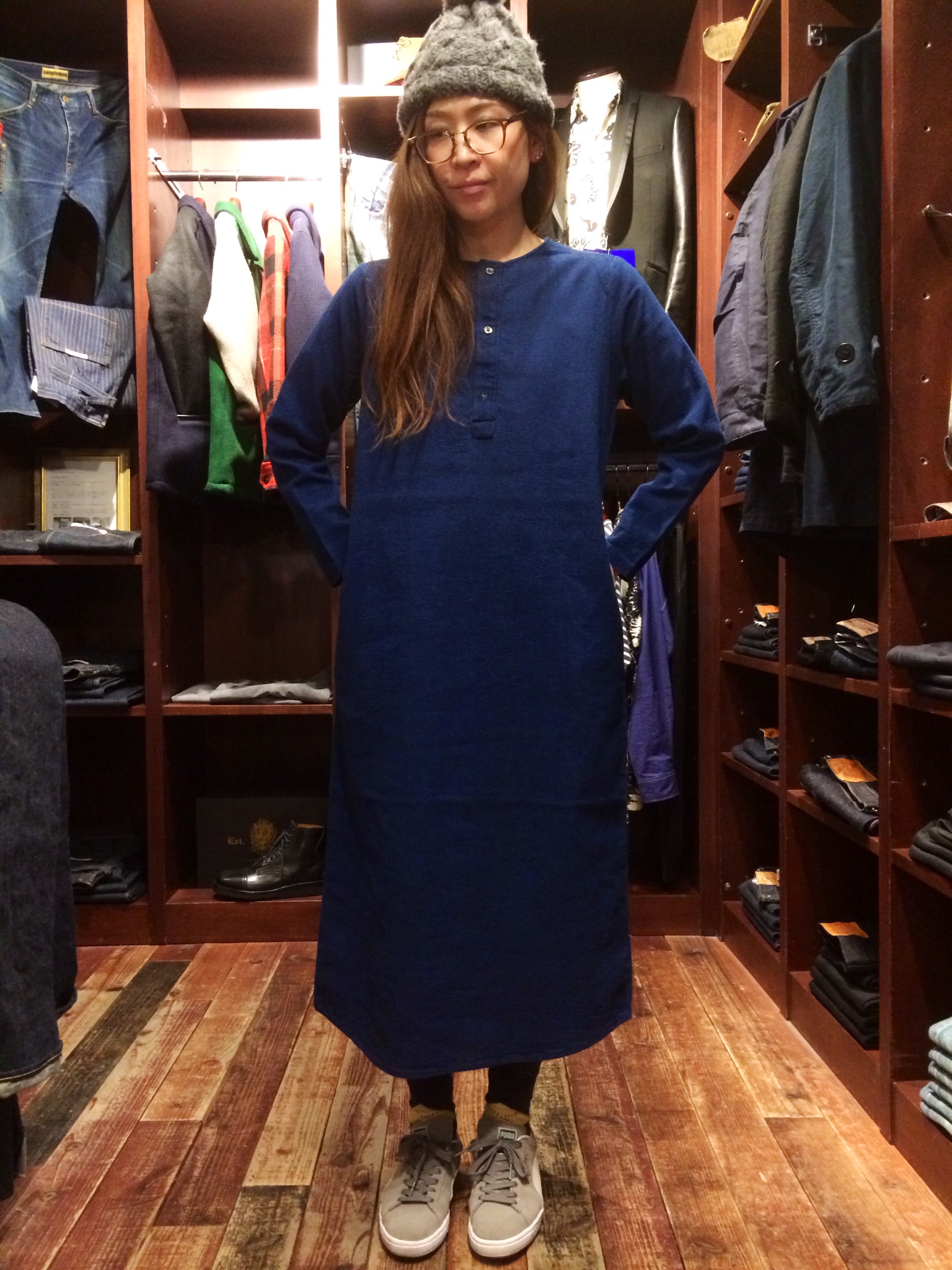 シャツとして着るのはもちろんですが、ざっくりとシャツオンしたり、スモック的な着こなしも面白いアイテムです。