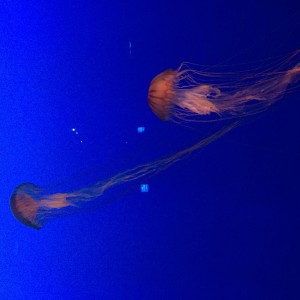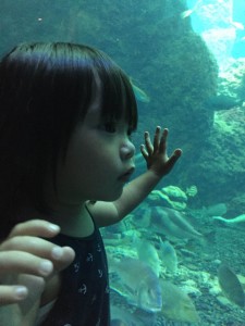 大水槽にかぶりつきかと思いきや隣にいたお姉さんに絡んでいました。