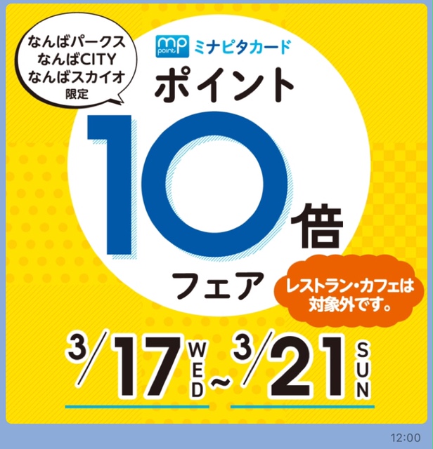 今!なんばパークスではミナピタポイント10倍フェアを開催しております!!!