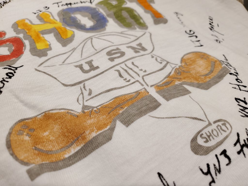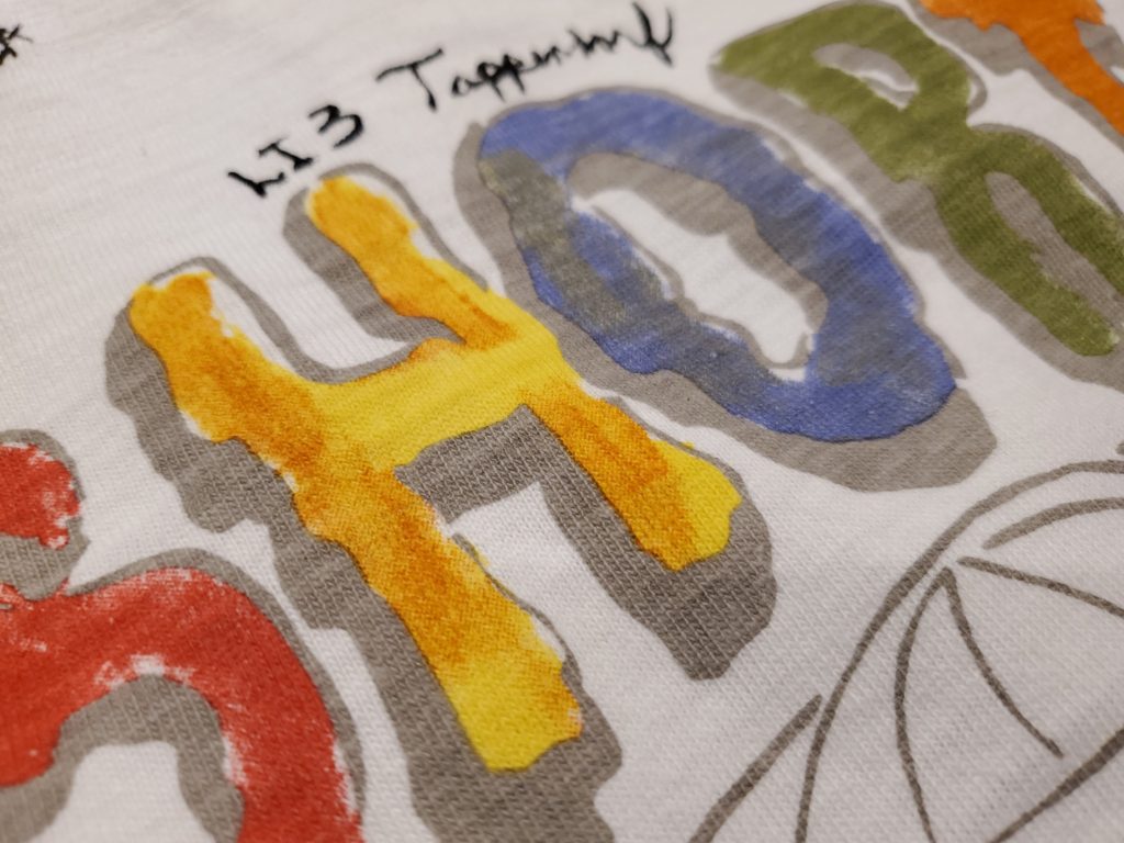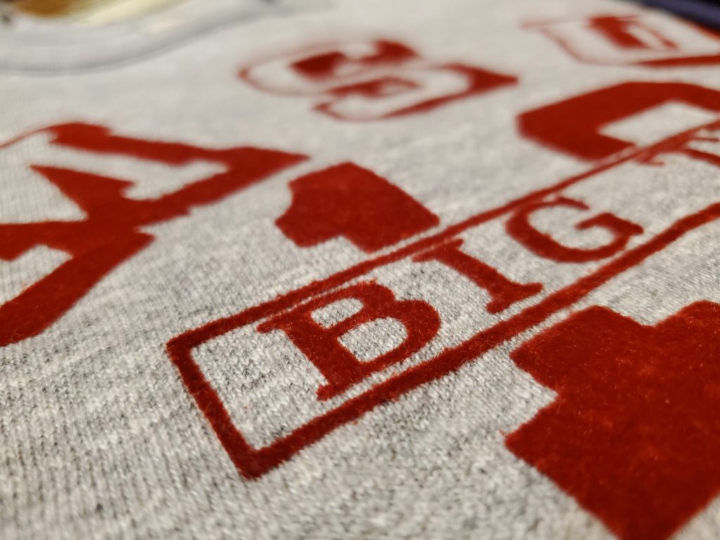 フロントはシンプルに単色フロッキープリントで描かれており、1965年に某大学が優勝した時に記念で作られたであろうデザイン。
