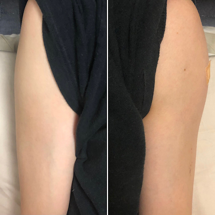 モデルナアーム体感しました。ガリな私はこの腫れ具合を目指し、筋トレ頑張ります。