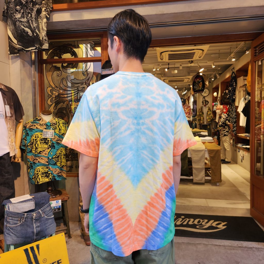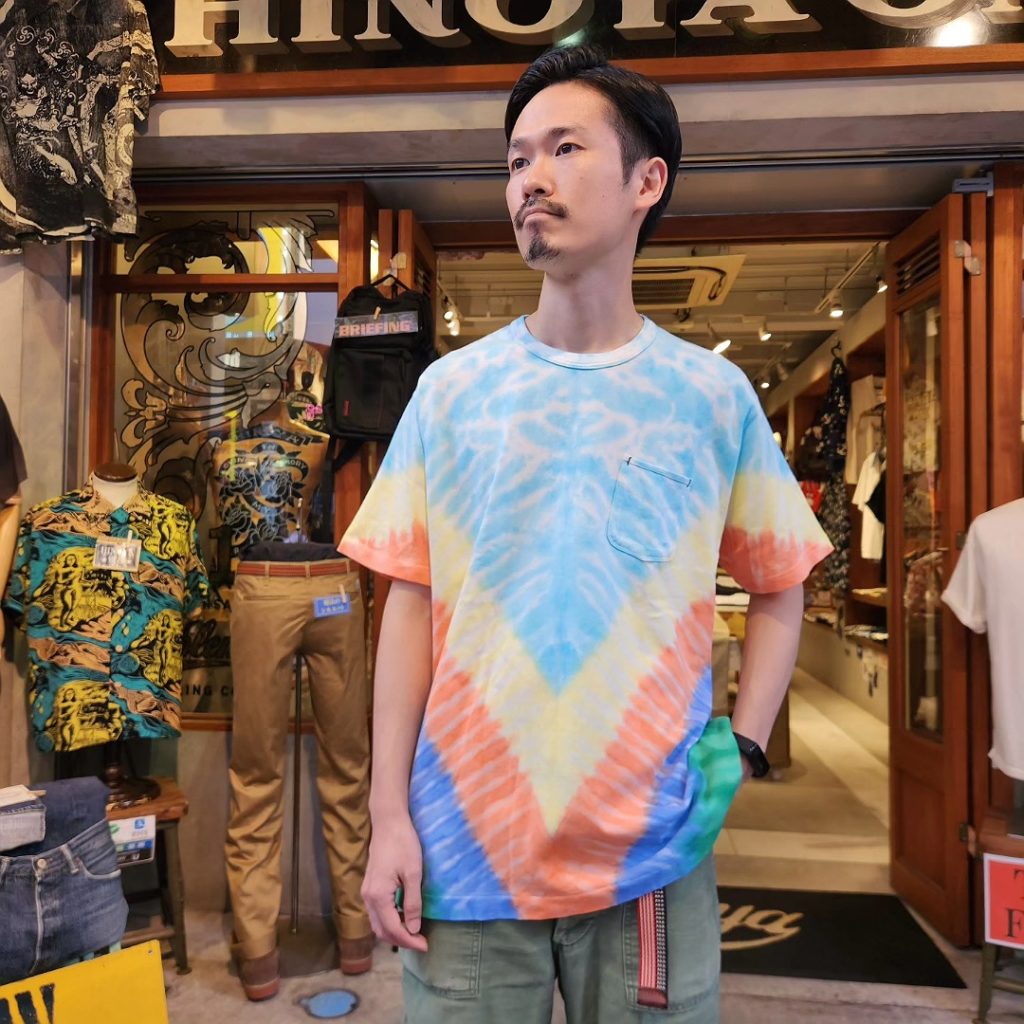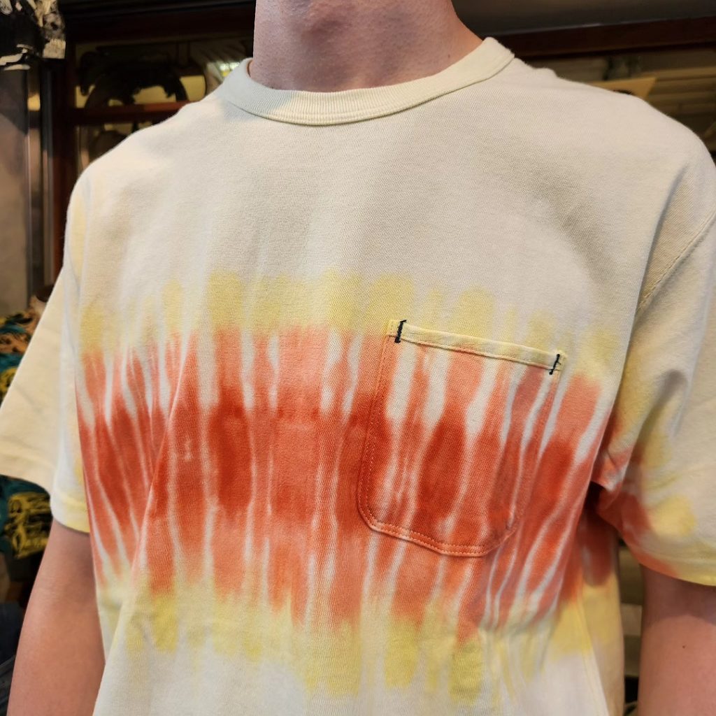 大人気バーガスプラスのポケ teeに日本のタイダイ染めのパイオニア小上馬和宏氏に染めを施してもらいました。今回染めに関しては全ておまかせ。柄や色の出方も全部が一点物となっております♪