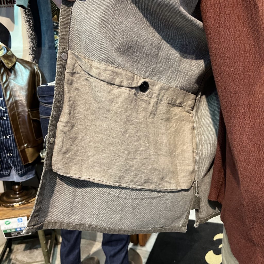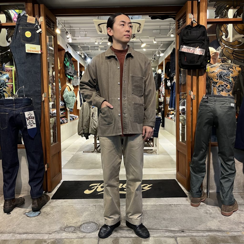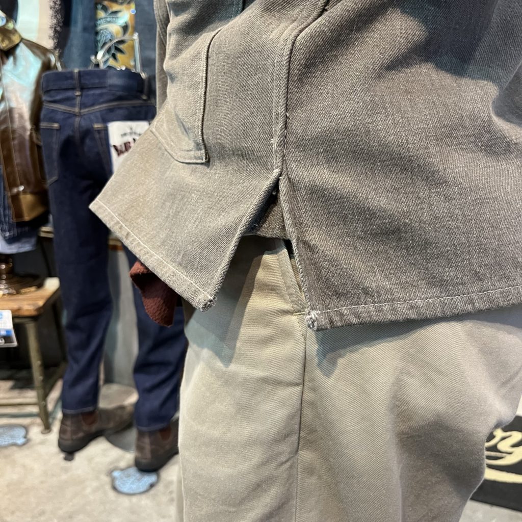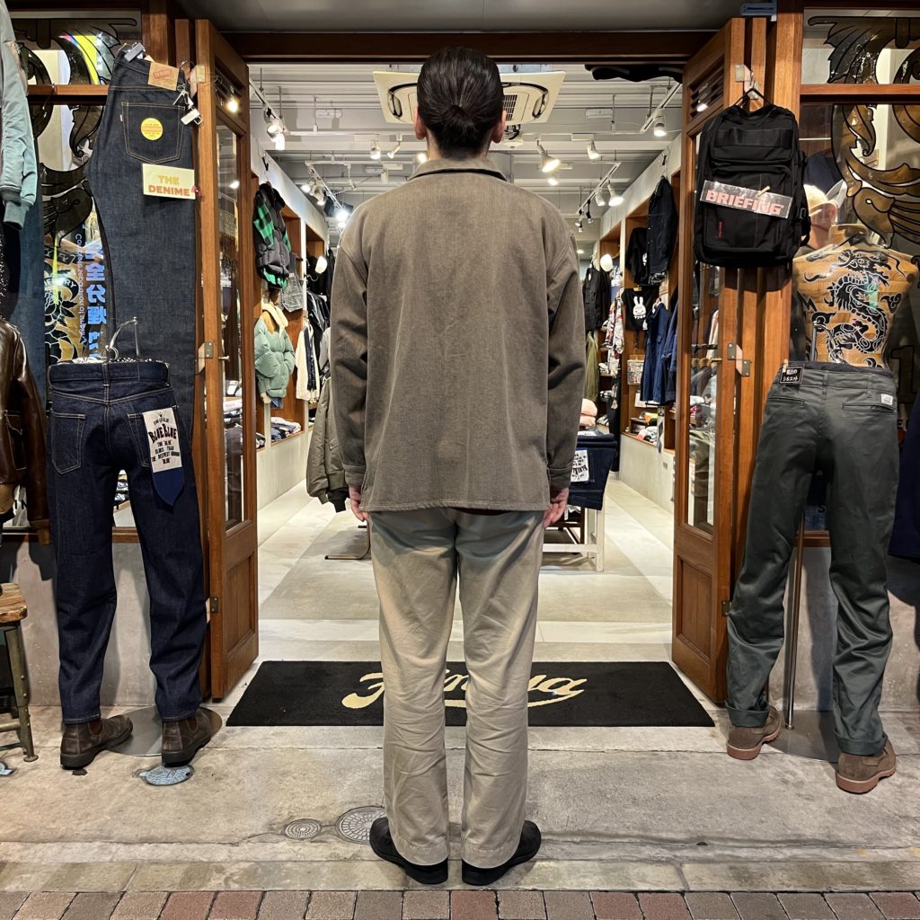 硫化染料で草木染のような色合いを表現したオリーブストーンカラー。