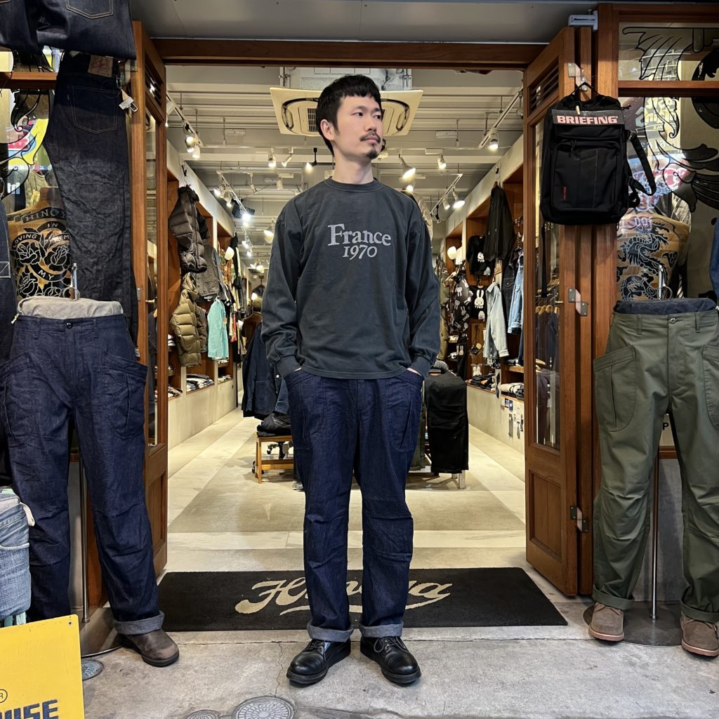 合わせたカーゴパンツはヒノヤ別注のAVONTADE!