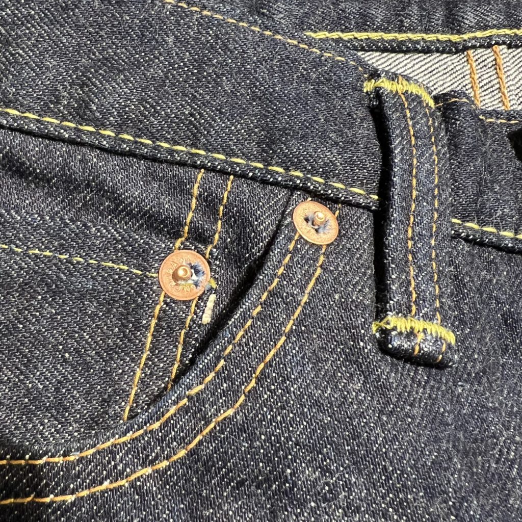 “イケ綿デニム”とゆう約15ozの特濃インディゴファブリックを使用!(色々調べてみましたが100回くらいサンプルを作りようやく完成した生地らしいです)