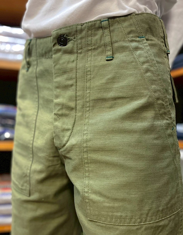 おはようございますヒノヤ本店です。来週からいよいよ夏らしい気温になってきますね。体調に気を付けてご来店ください。今週はファティーグパンツを紹介させていただきます!
