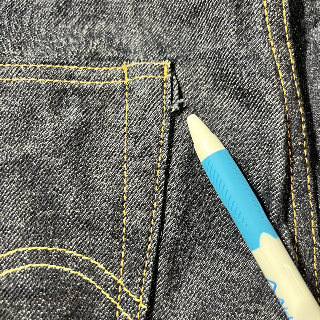 めちゃくちゃマニアックなディテールですがポケットの縫い代がはみ出た仕様。