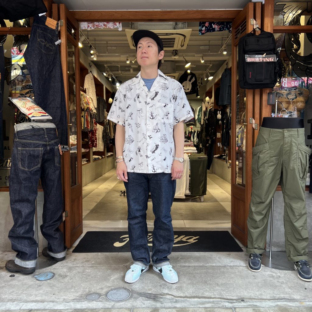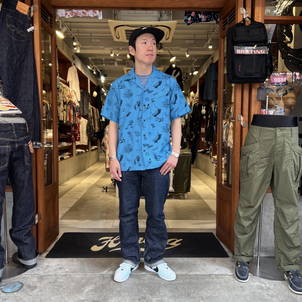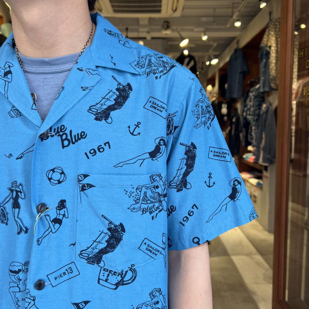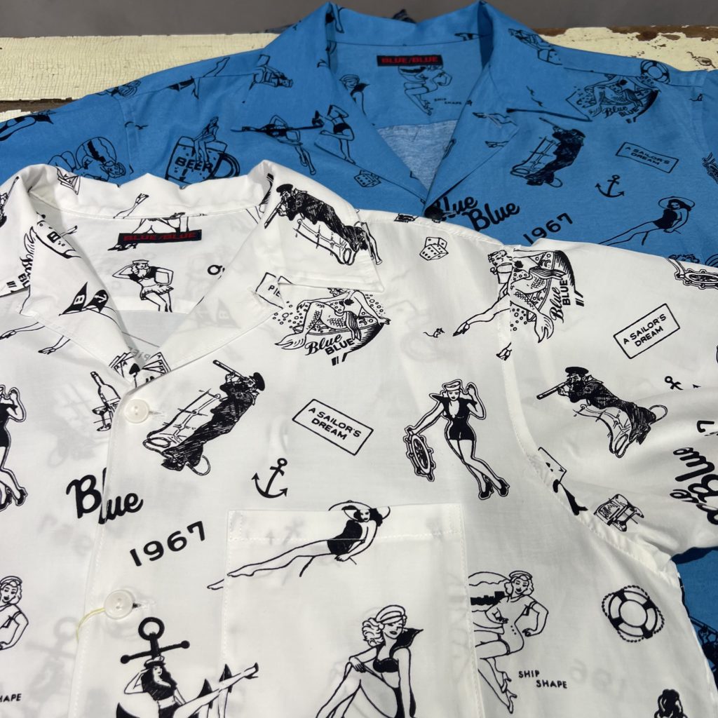 BLUE BLUEらしいインパクトのある総柄。
