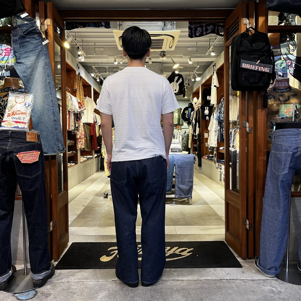 ヴィンテージと同じく経年変化により生地が斜行していく生地。