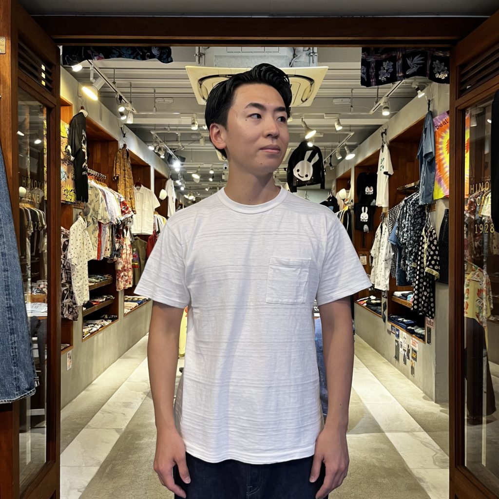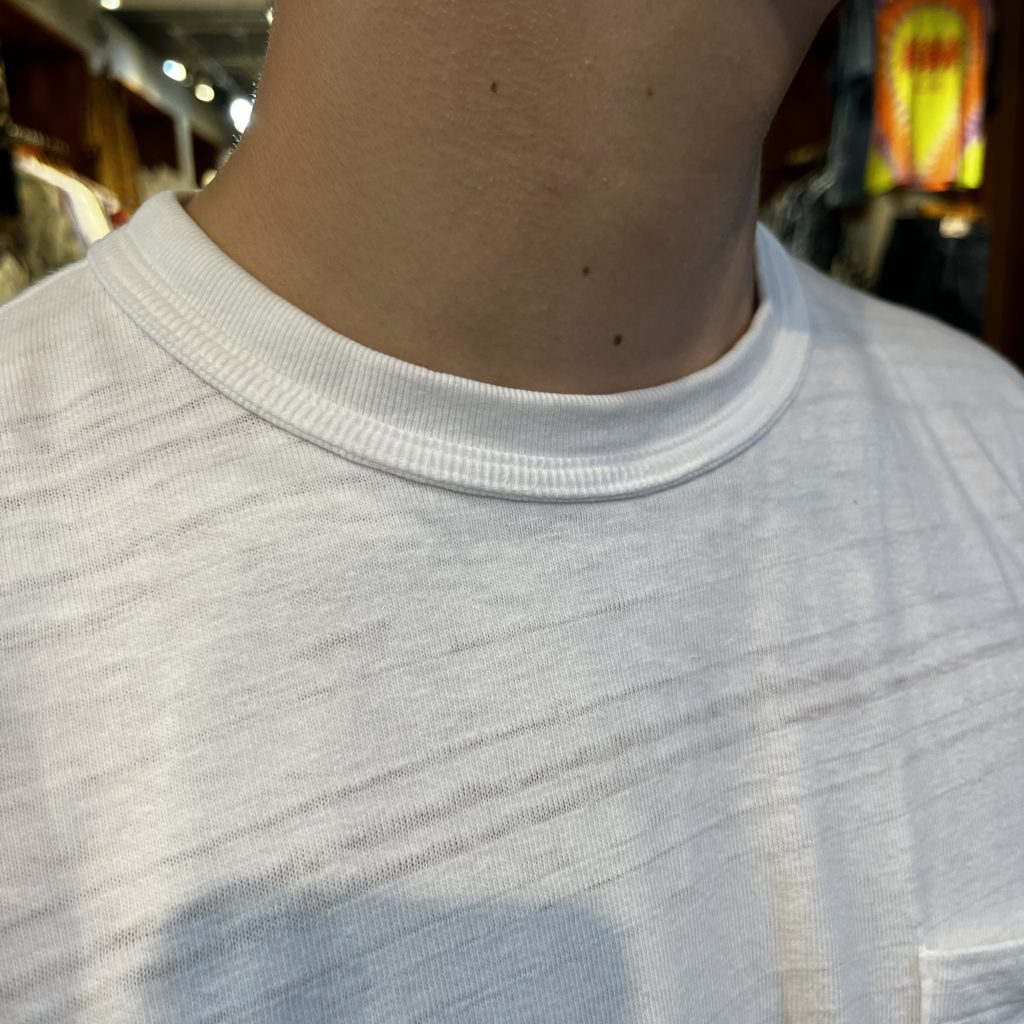 「吊り編み機より希少」といわれる旧式のローゲージ編み機で編まれたウエアハウスの定番ボディー。