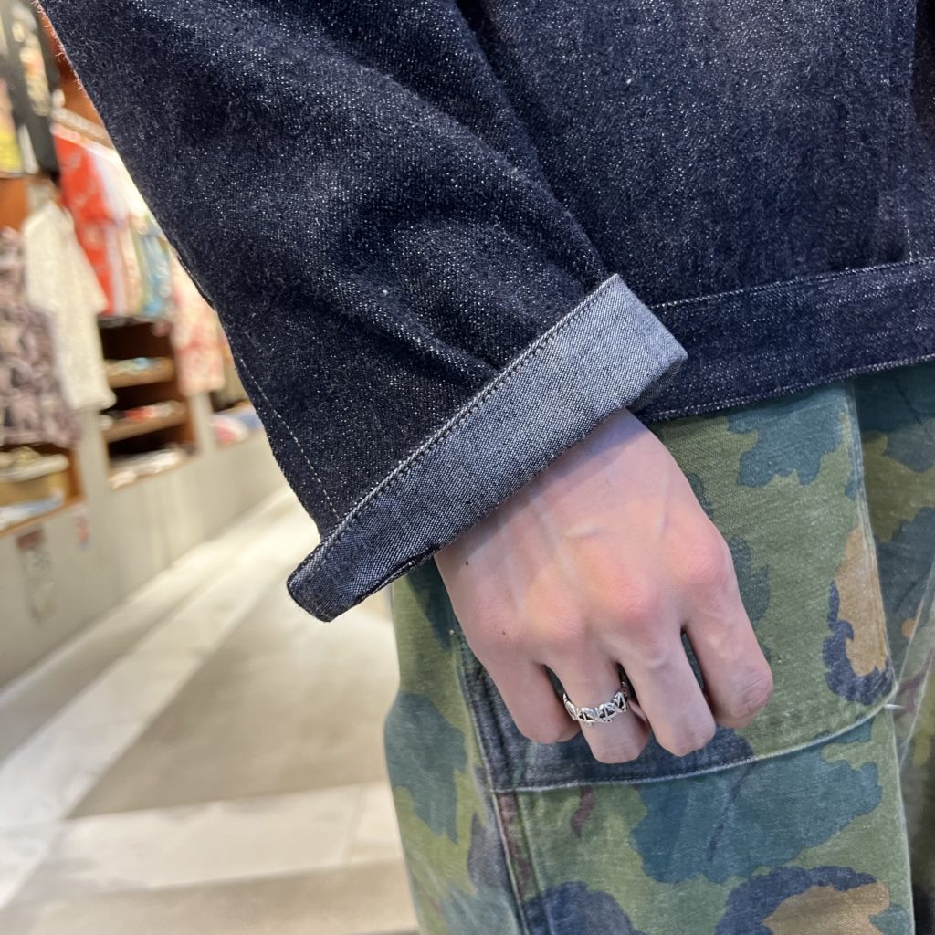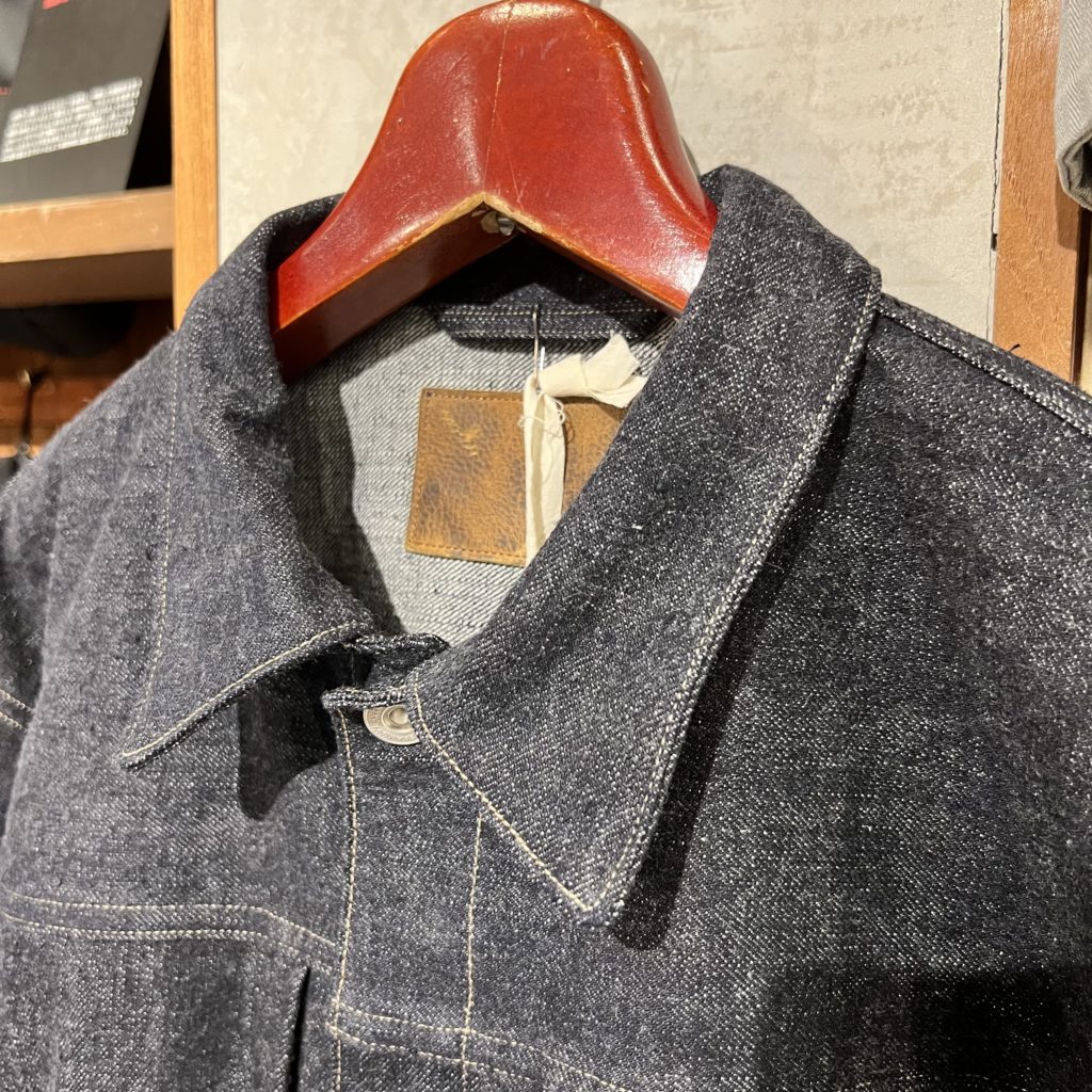 私たちのシグネチャーデニムプロダクト。所謂な著名なデザイン仕様、パターンとは異なり、シャツのような綺麗に返りのついたポインテッドカラーは品の良い佇まいです。またライニングに配された大振りなポケットや、袖口のセルビッジのマチ仕様など、細かなオリジナルディテールが盛り込まれています。